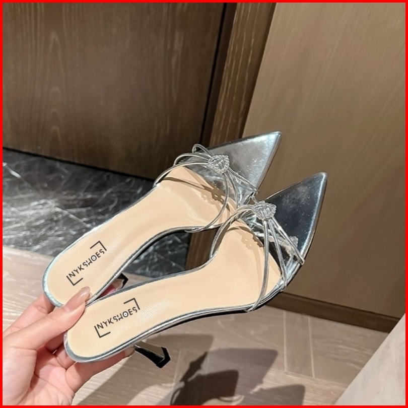 Nyk Shoes Sandal Wanita Heels Tali Love Mutiara Korean Fashion Hak 7cm