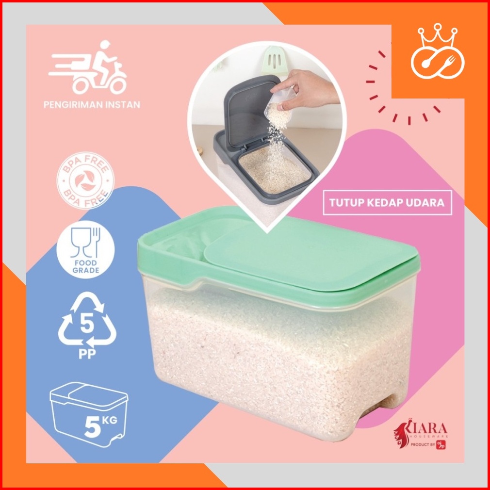 Tempat Beras 5 Kg Rice Box Kiara Cjp Free Gelas Takar - Random Warna