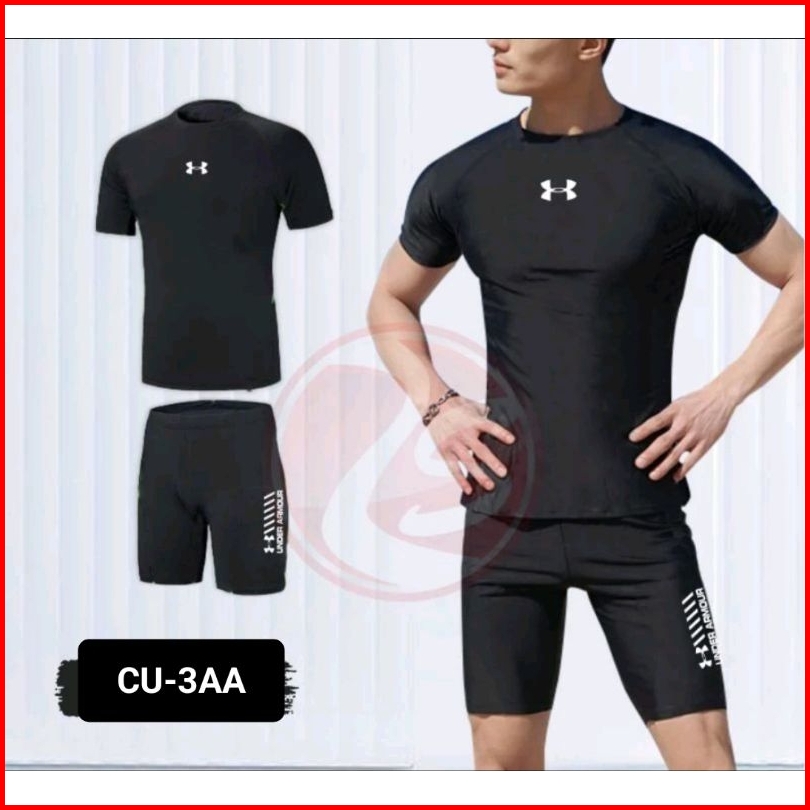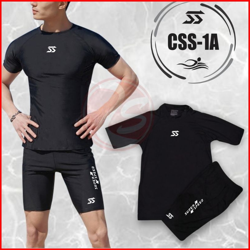 Baju Renang Hitam Celana Renang Hitam Pakaian Olahraga Pria Short Pants Sport Kaos Dalaman Csswim