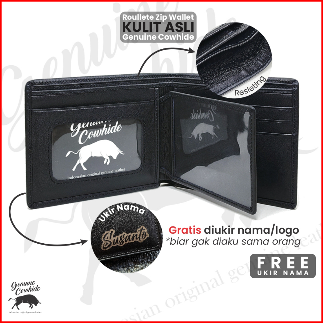 Dompet Kulit Sapi Asli Resleting - Bergaransi 6 Bulan - Genuine Cowhide