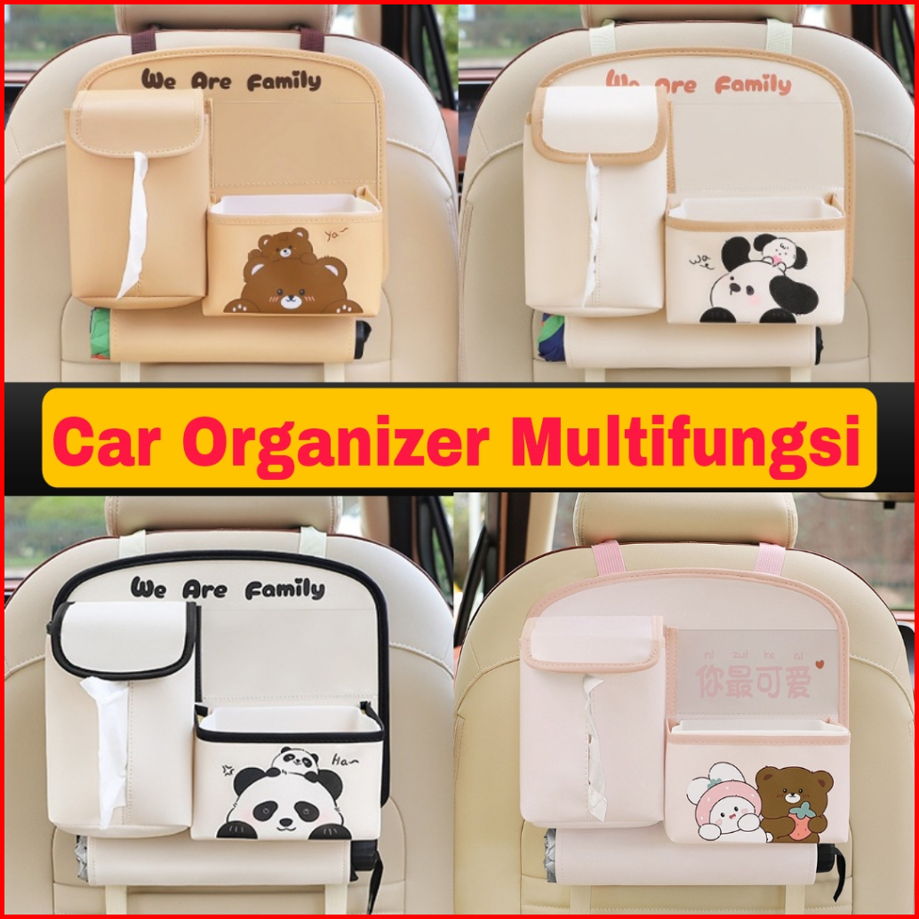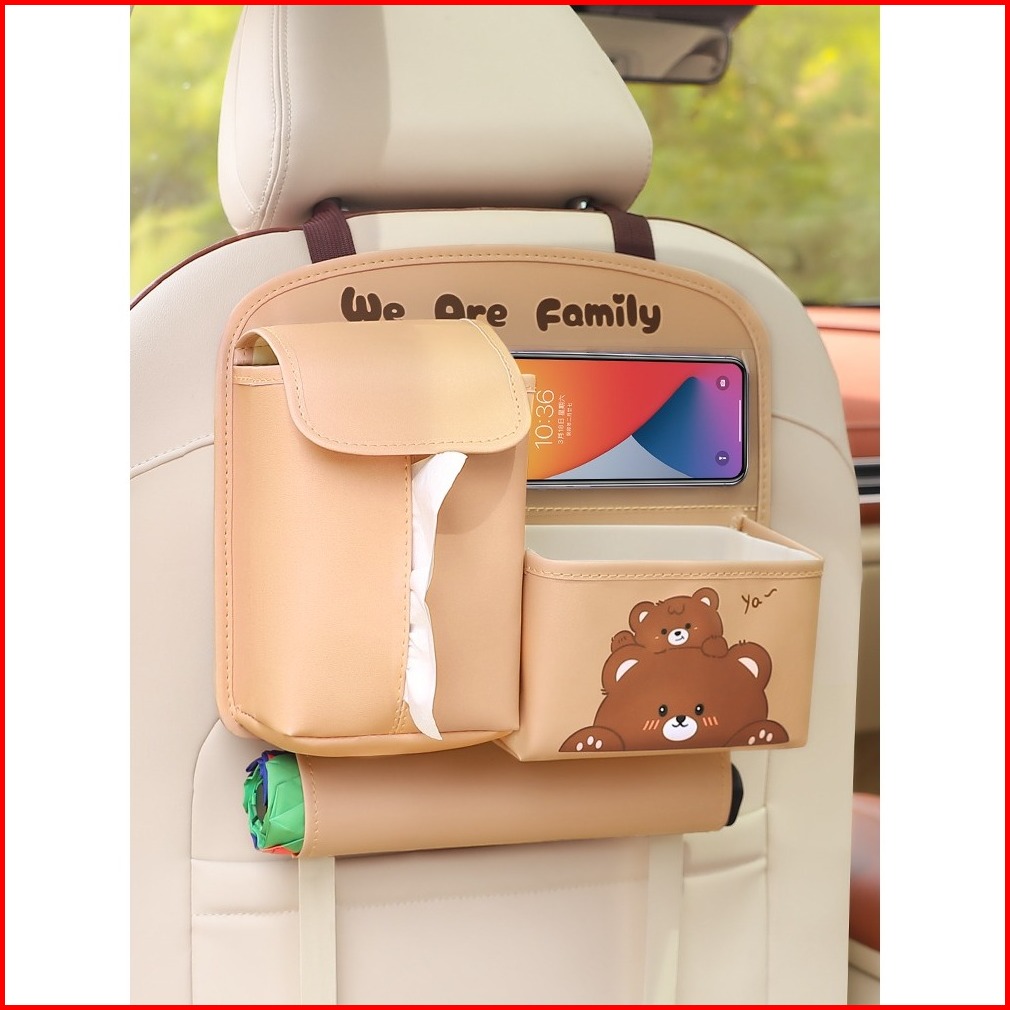 Car Seat Organizer 4in1 Multifungsi Tissue Tong Sampah Mobil Kulit 910