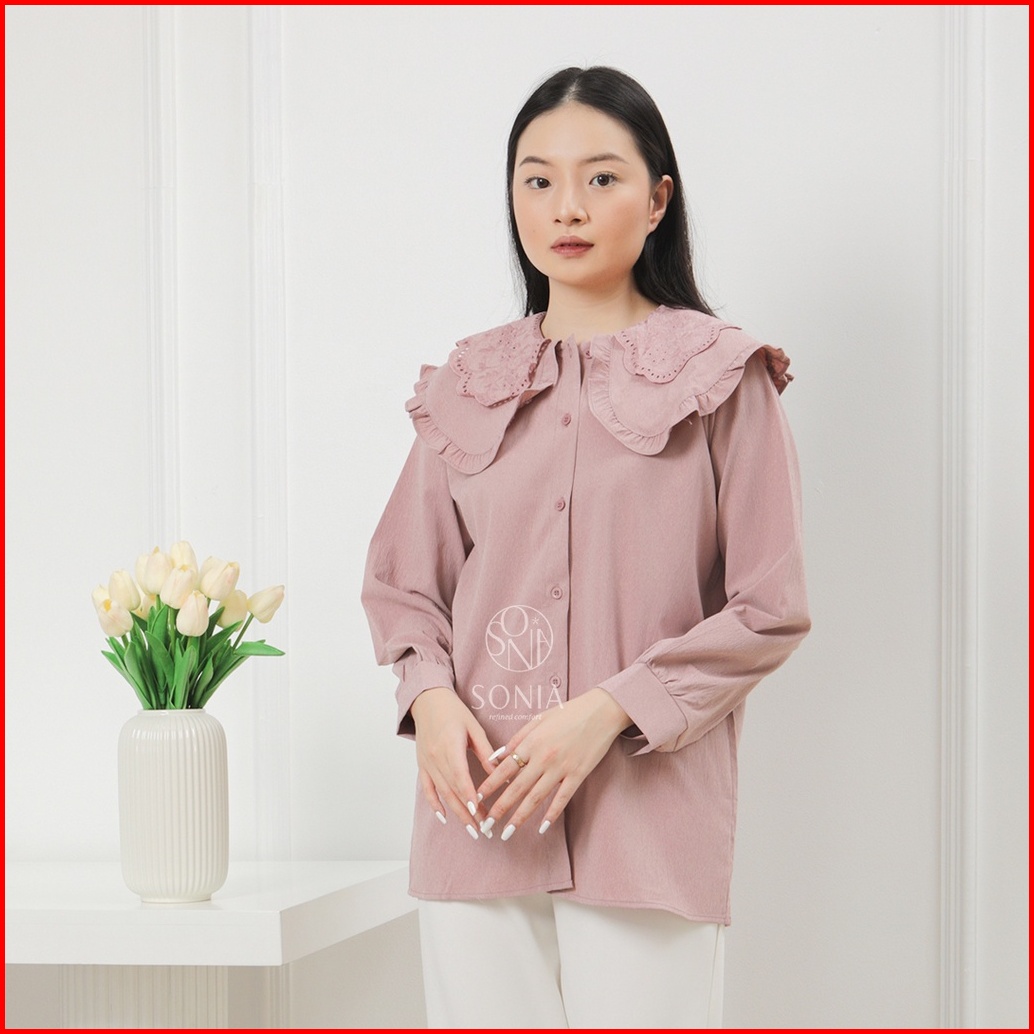 Jill Blouse Sonia Kemeja Katun Premium Wanita Blouse Korea Wanita Kemeja Ruffle Polos Atasan Kemeja Wanita Korea