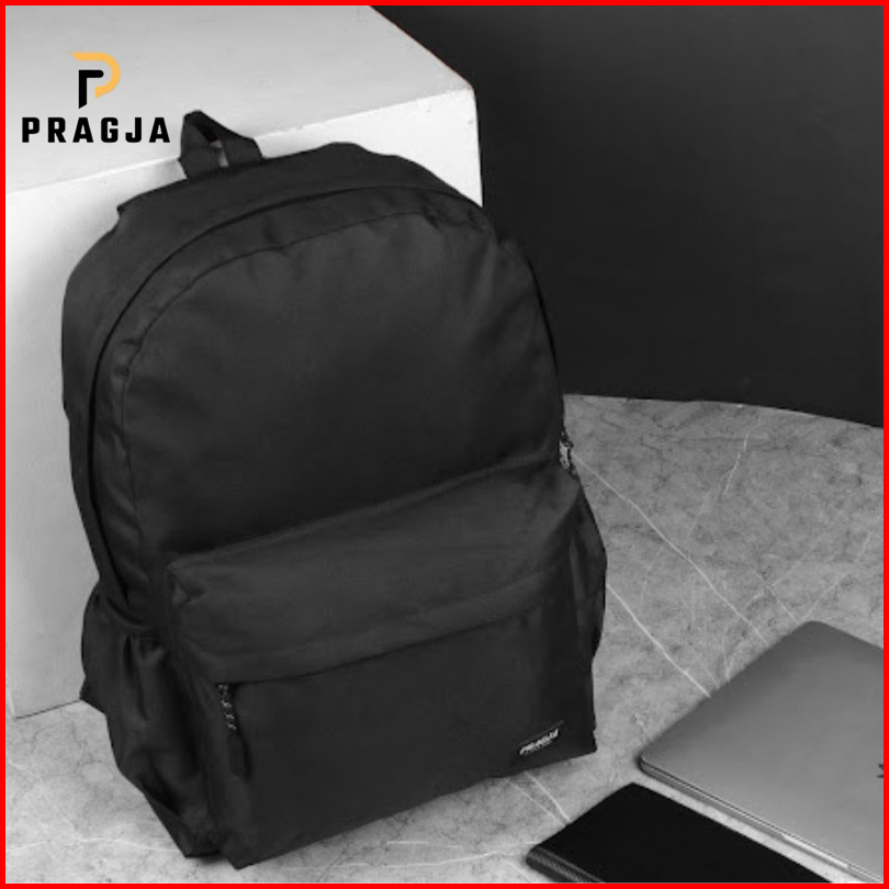 Pragja Tas Black Backpack Tas Ransel Sekolah Polos Tas Gendong Polos