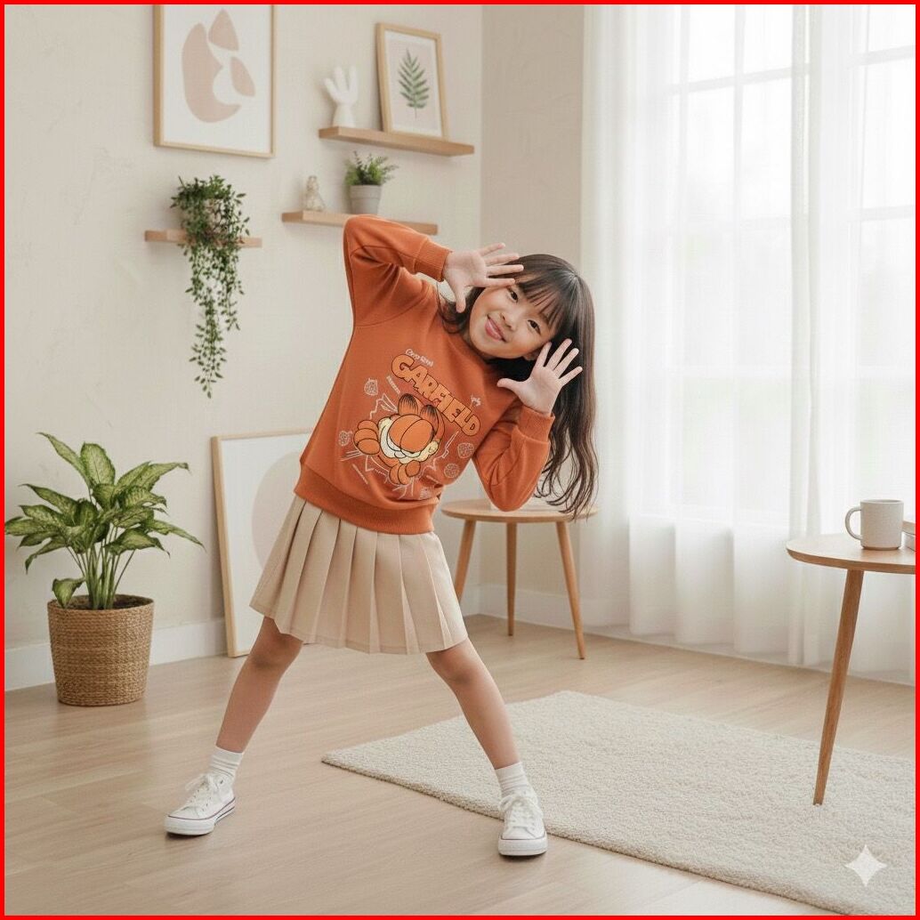 King Azlan Sweater Raglan Anak Motif Garfield