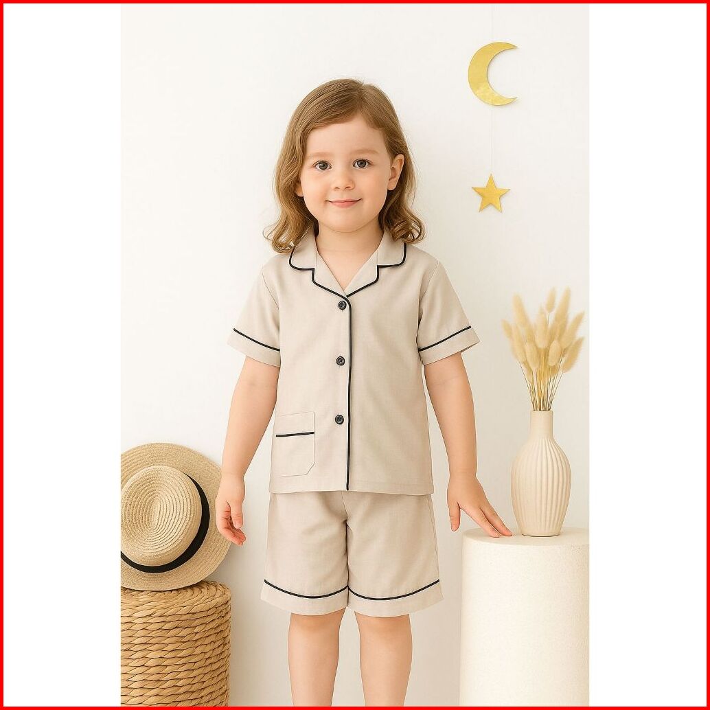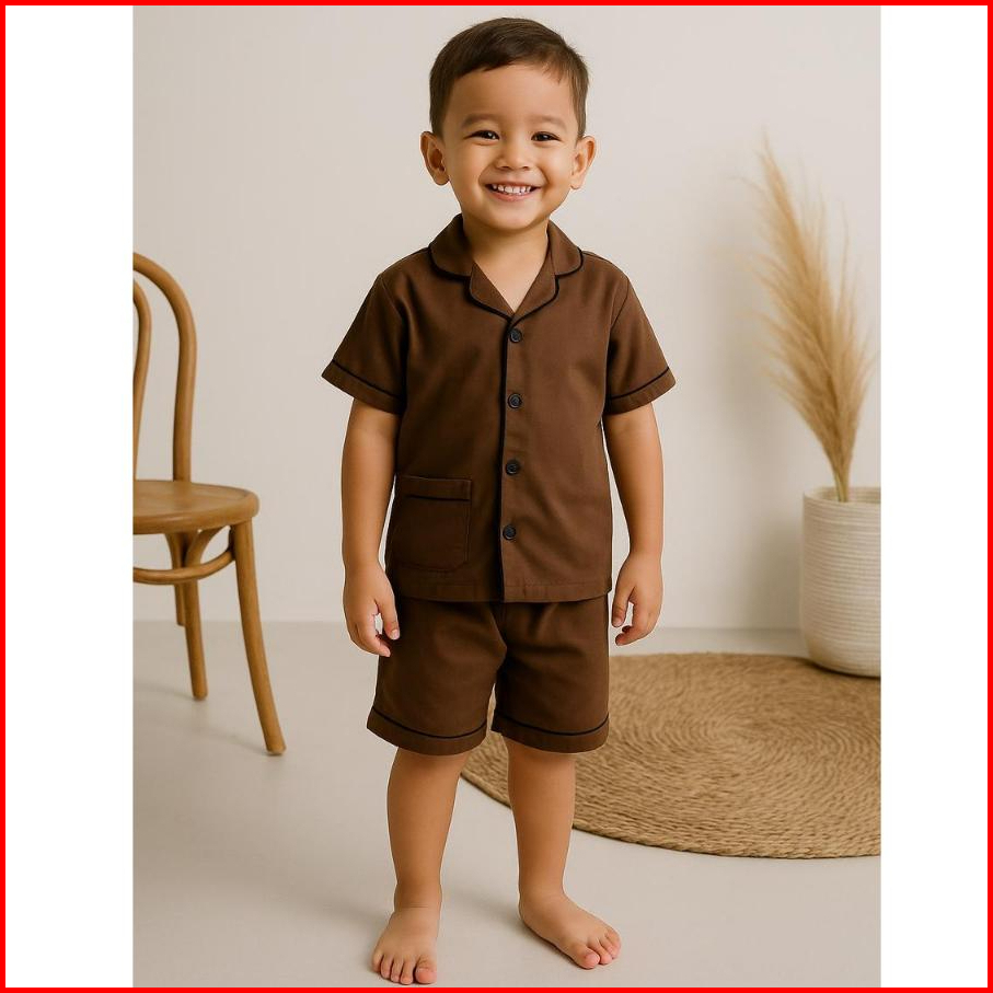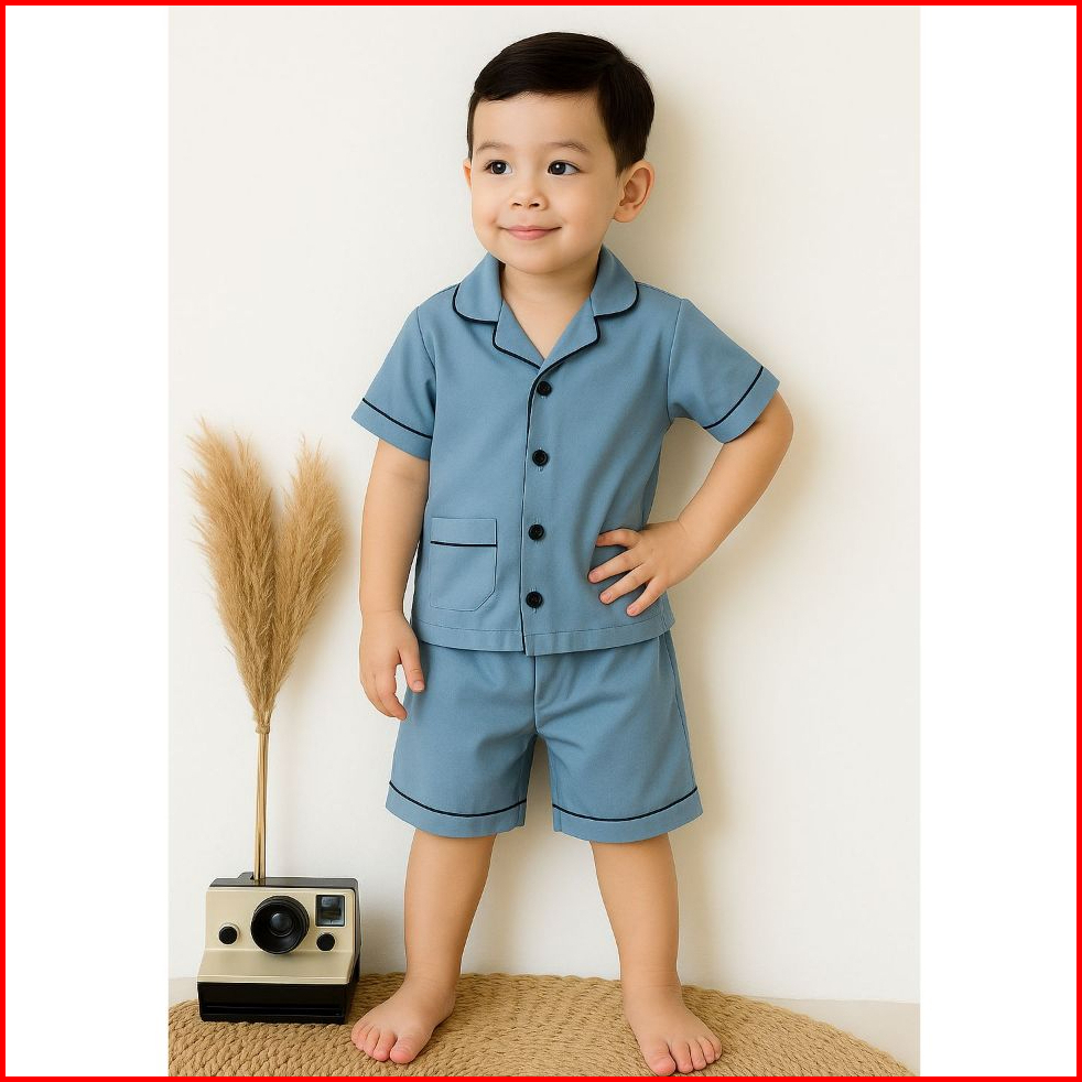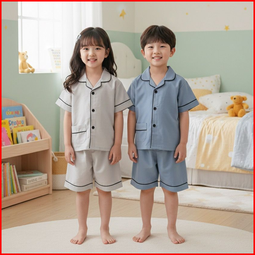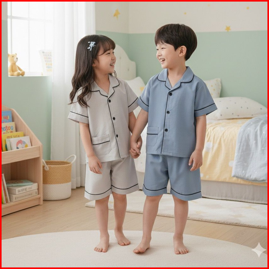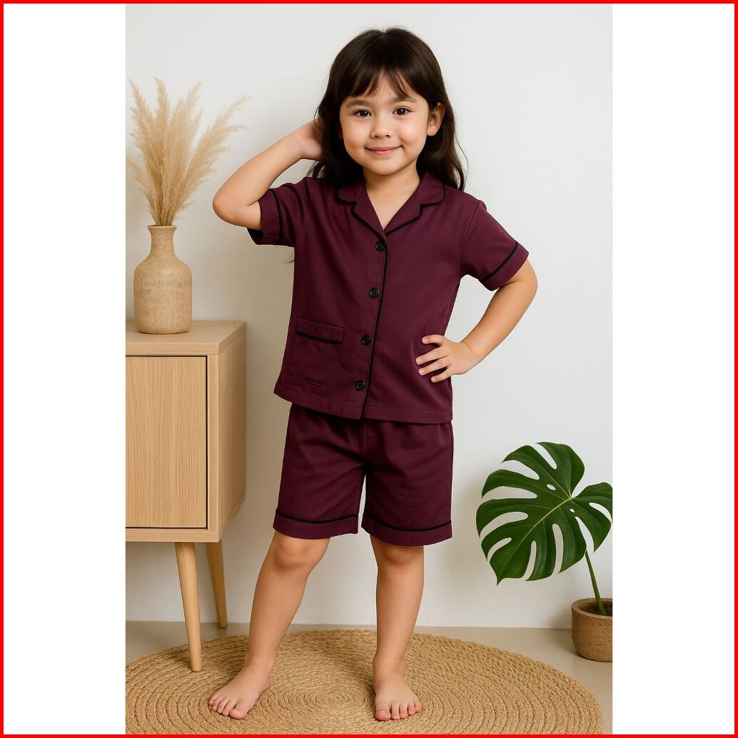 King Azlan Piyama Anak Polos Celana Pendek Variasi List