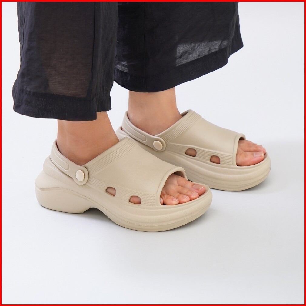 Ataru Ukuran 38-39 Sandal Wanita Clogs Wedges Sling Back - Krem Sendal Cewek Alas Kaki Slide Wanita Women Fashion