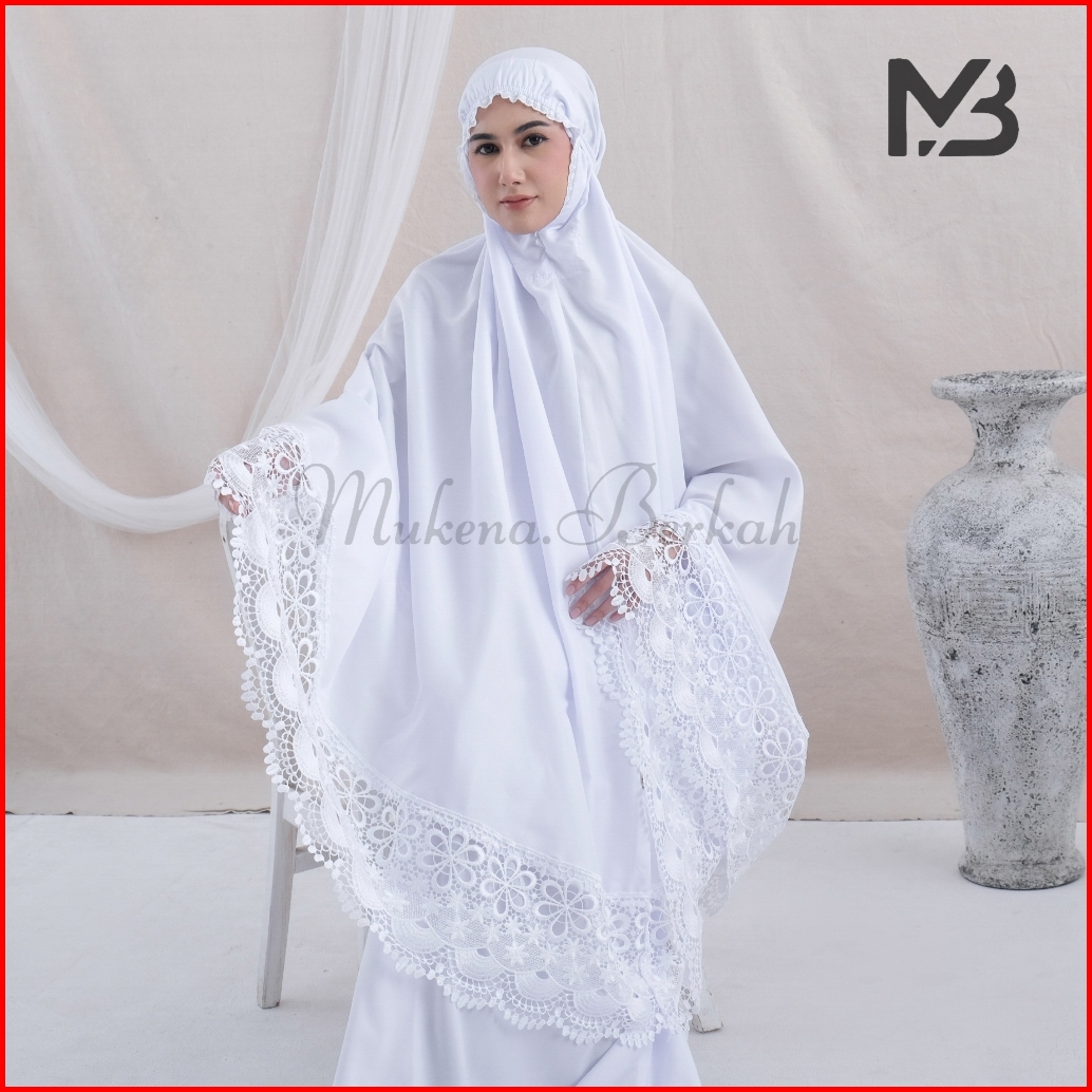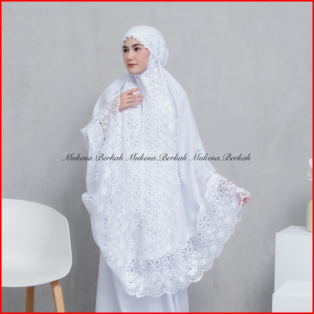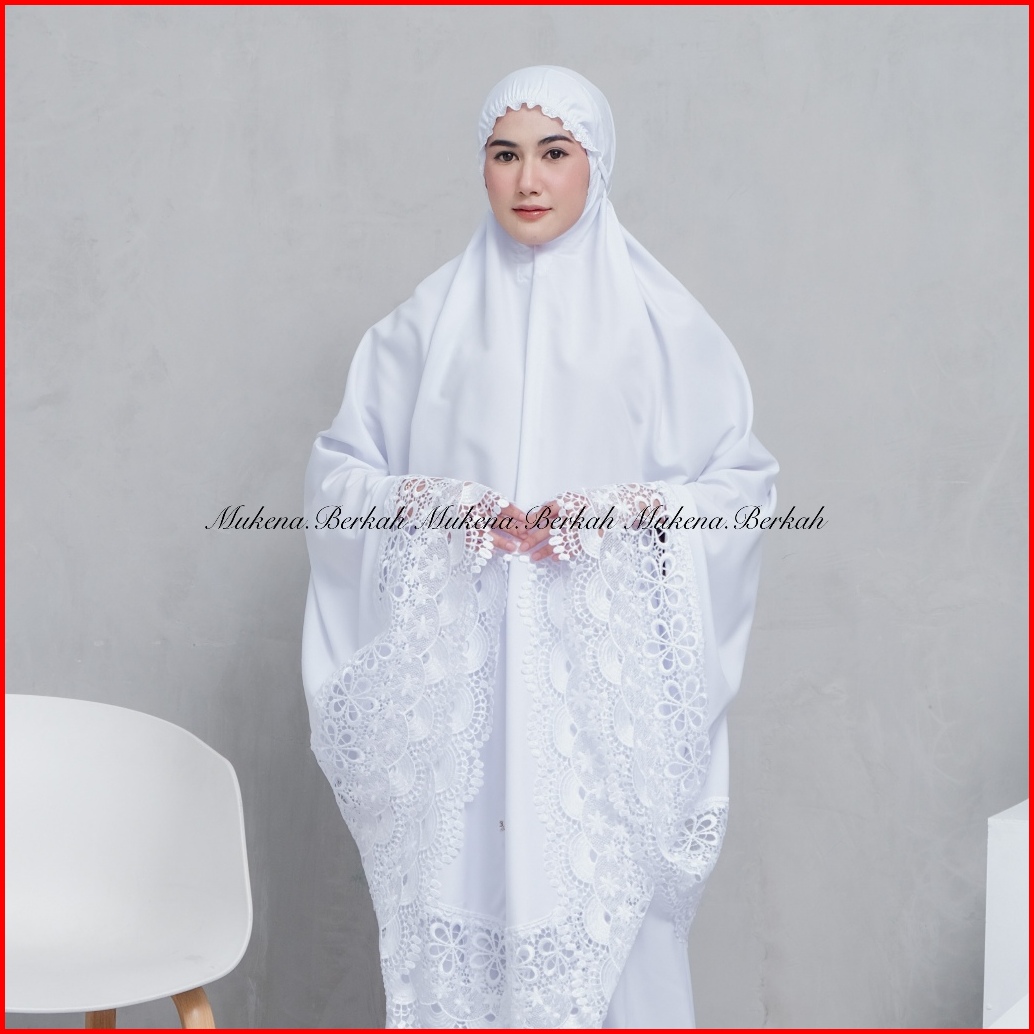 Mukena Umroh Dan Haji Putih Bersih Renda Seroja Mewah