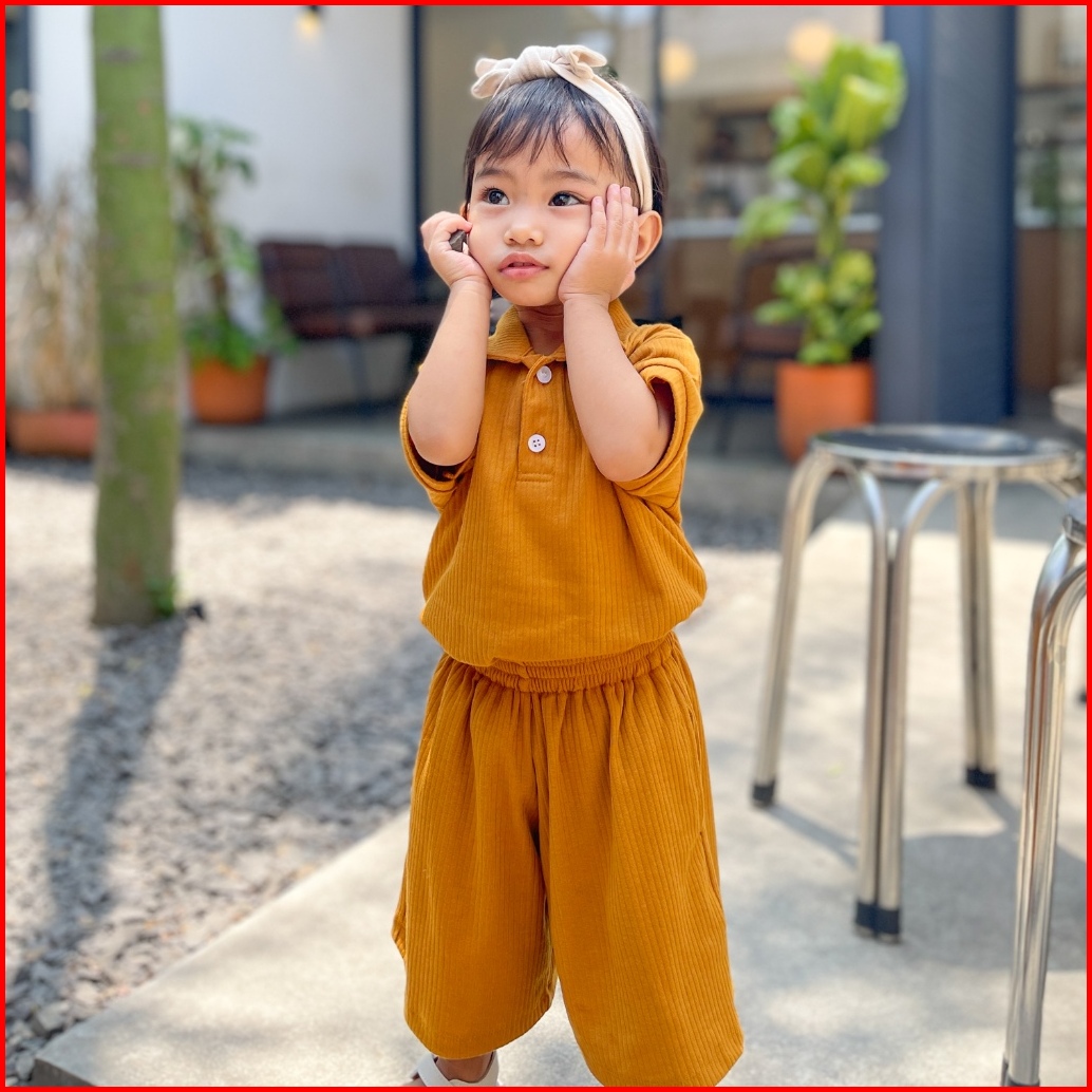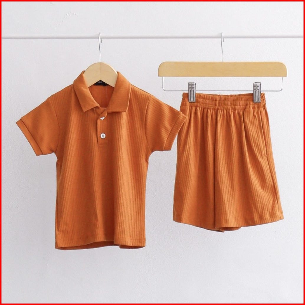 Isla Little Joey Polo Kids Set - Rib Knit Set - Stelan Polo Anak Lengan Pendek