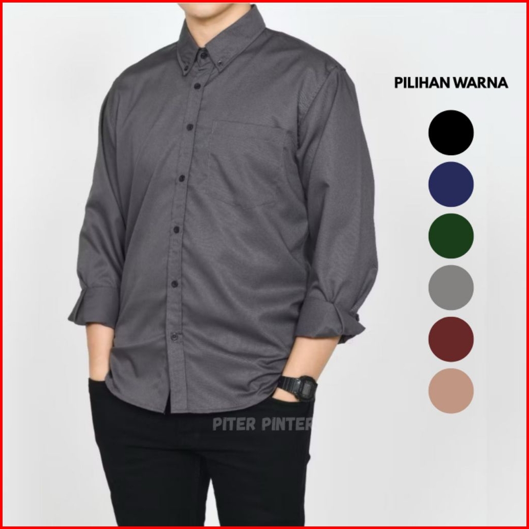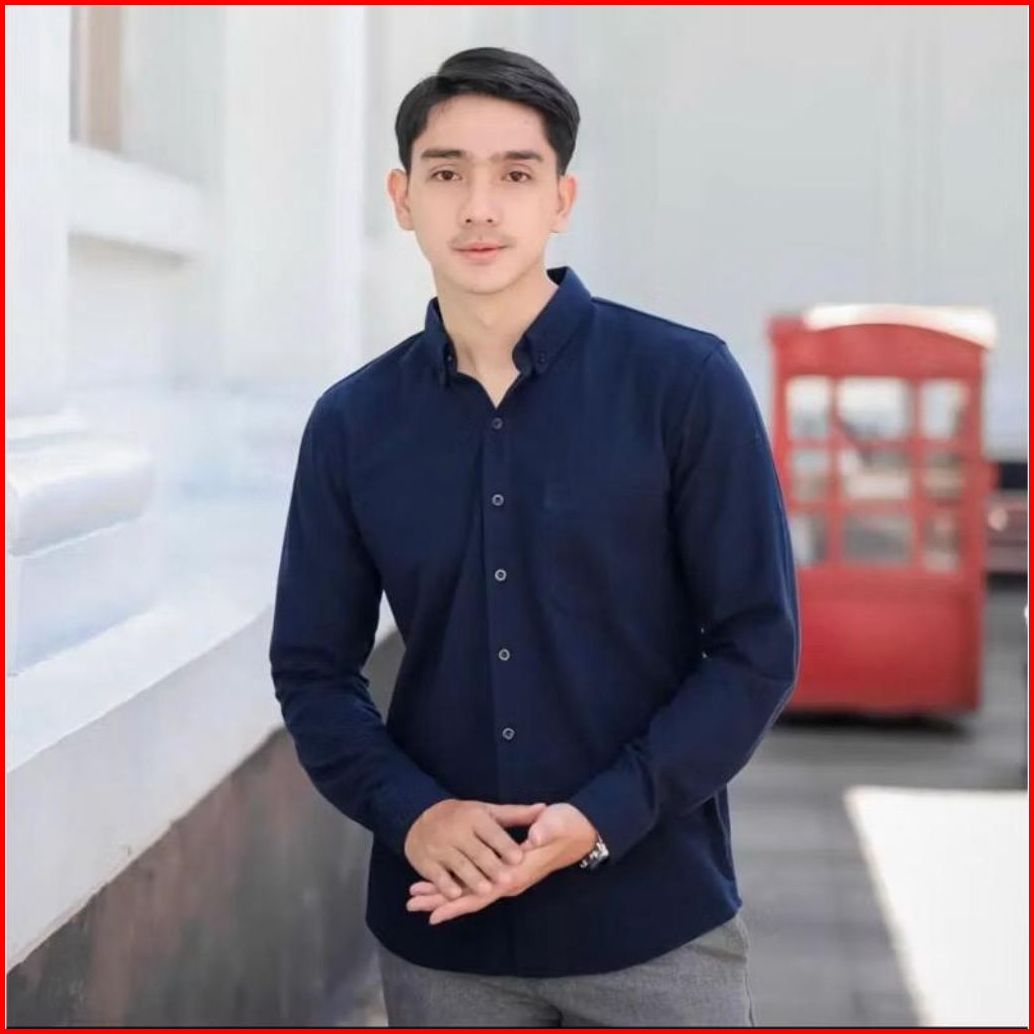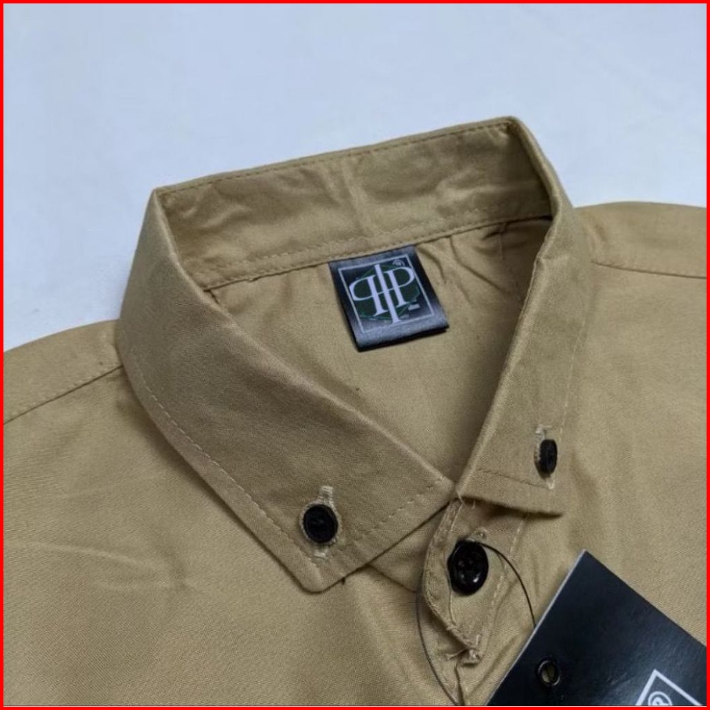 Baju Kemeja Atasan Polos Hijau Army Kasual Formal Katun Lengan Panjang Pria