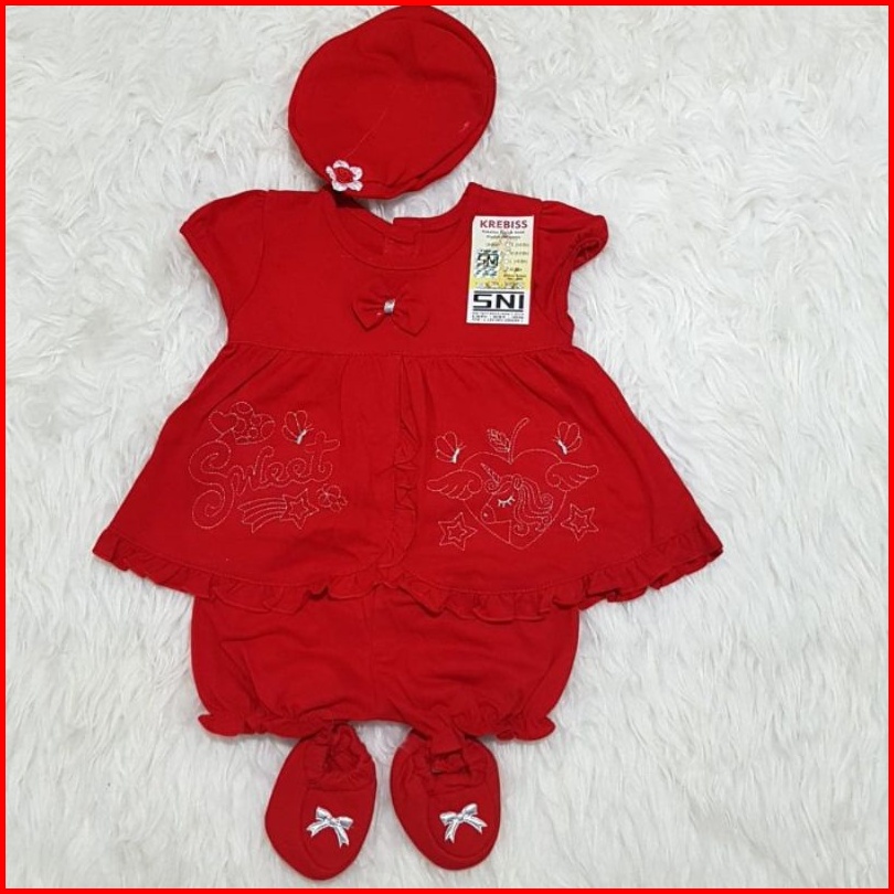 Krebiss Baju Bayi Perempuan Newborn 0-6 Bulan Merah