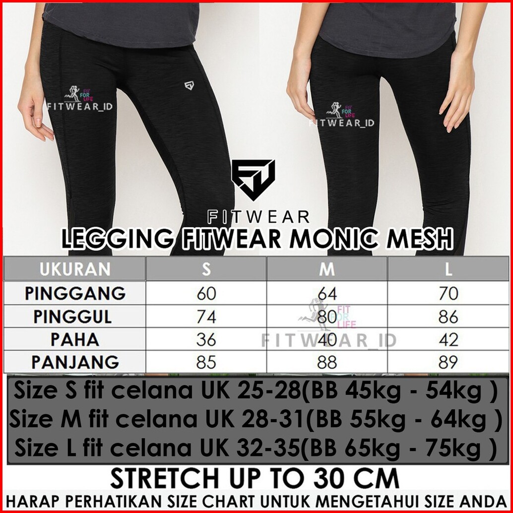 Fitwear - Legging Olahraga Wanita Monic Mesh Pocket - Black - S - L