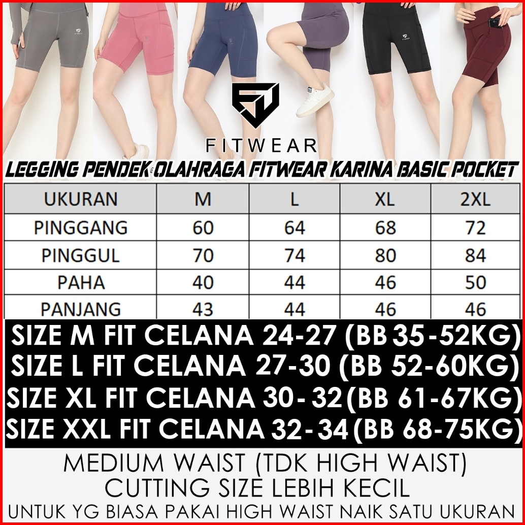 Fitwear - Celana Legging Pendek Olahraga Wanita Karina Basic Pocket - M - 2xl