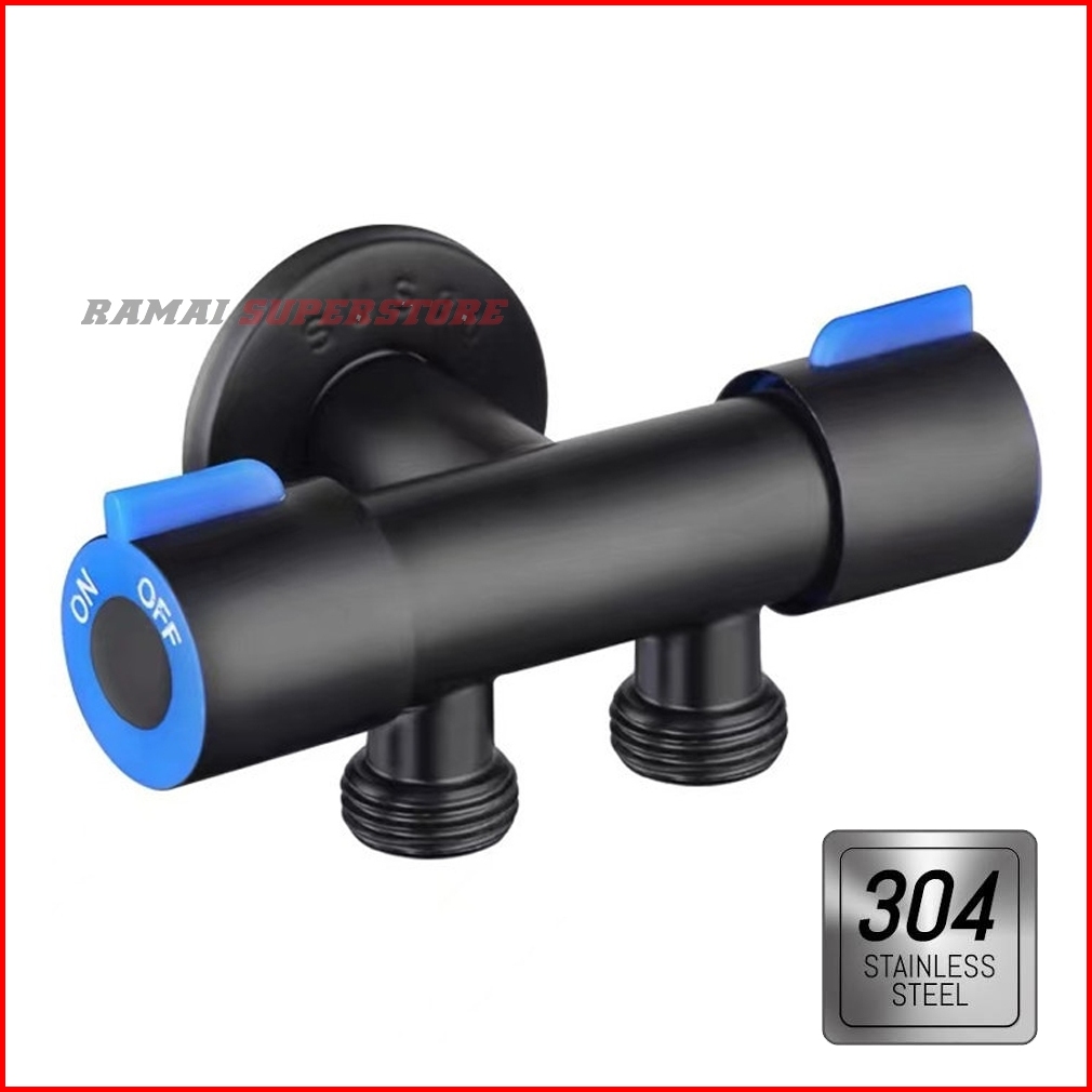 Stop Kran Hitam Cabang Dua Out Stainless 304