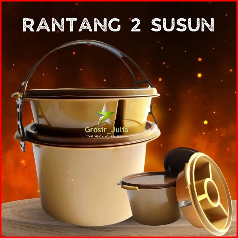 Isi 12biji Rantang Bulat Piknik Hajatan 2 Susun Plastik Anti Karat Idola