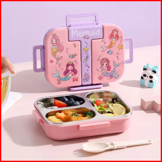 Penjual Lokal Kotak Makan Anak Stainless Lunch Box Sekat Motif Lucu Tempat Bekal Sekolah Anti Bocor Astro Mermaid