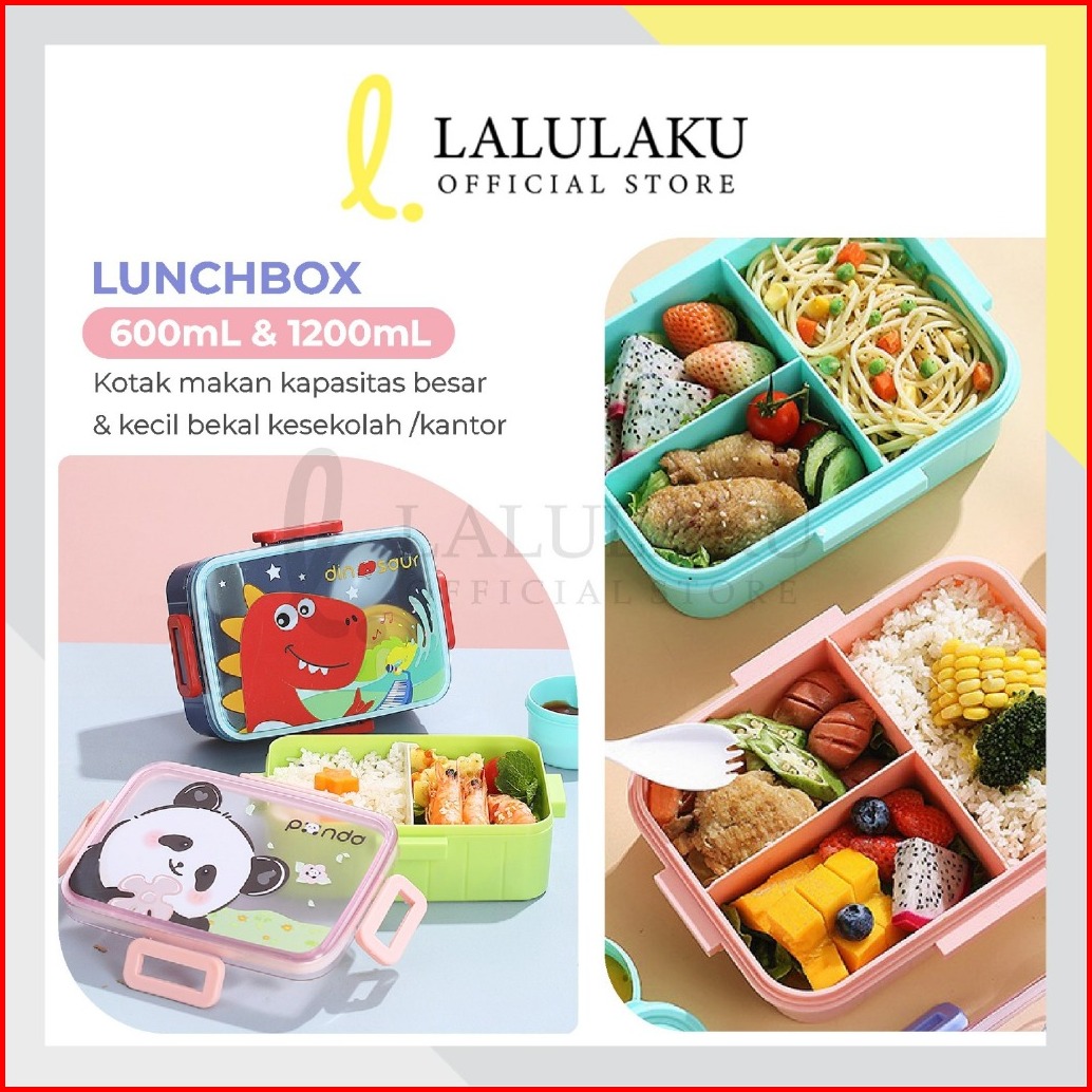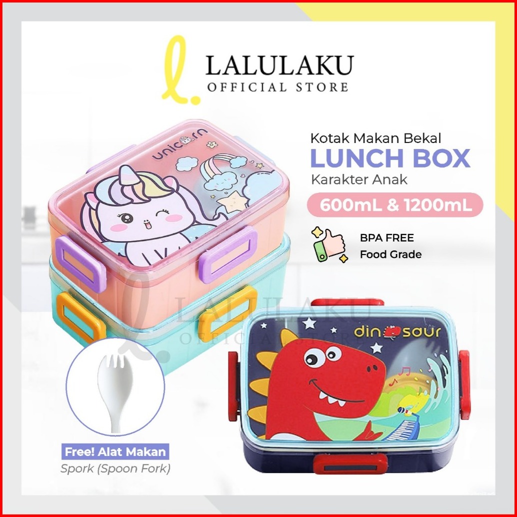 Lunch Box Anak Tk Sd Paud Kotak Bekal Karakter Unicorn Dino Panda Astronot 600ml 1200ml