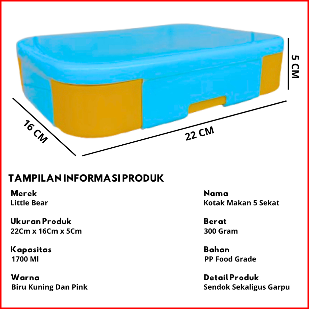 Lunchbox 1700ml Lunchbox Lunchbox 5 Sekat Kotak Bekal Wadah Bekal
