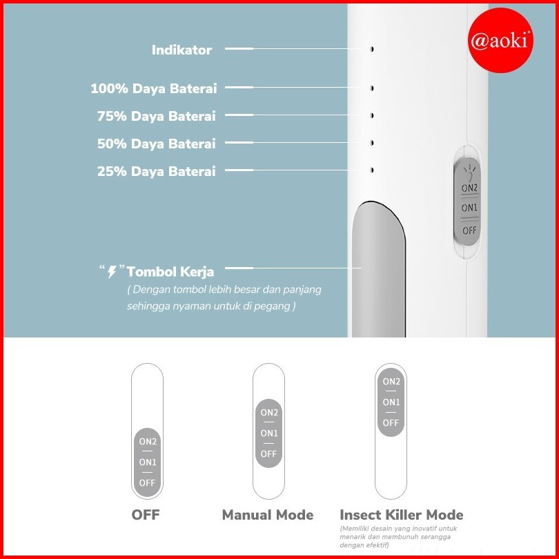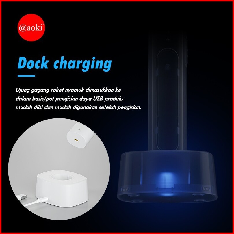 Aoki Ak893s Ak881s Raket Nyamuk Listrik Cas Lampu Uv 2 In 1 Bonus Kabel Charger