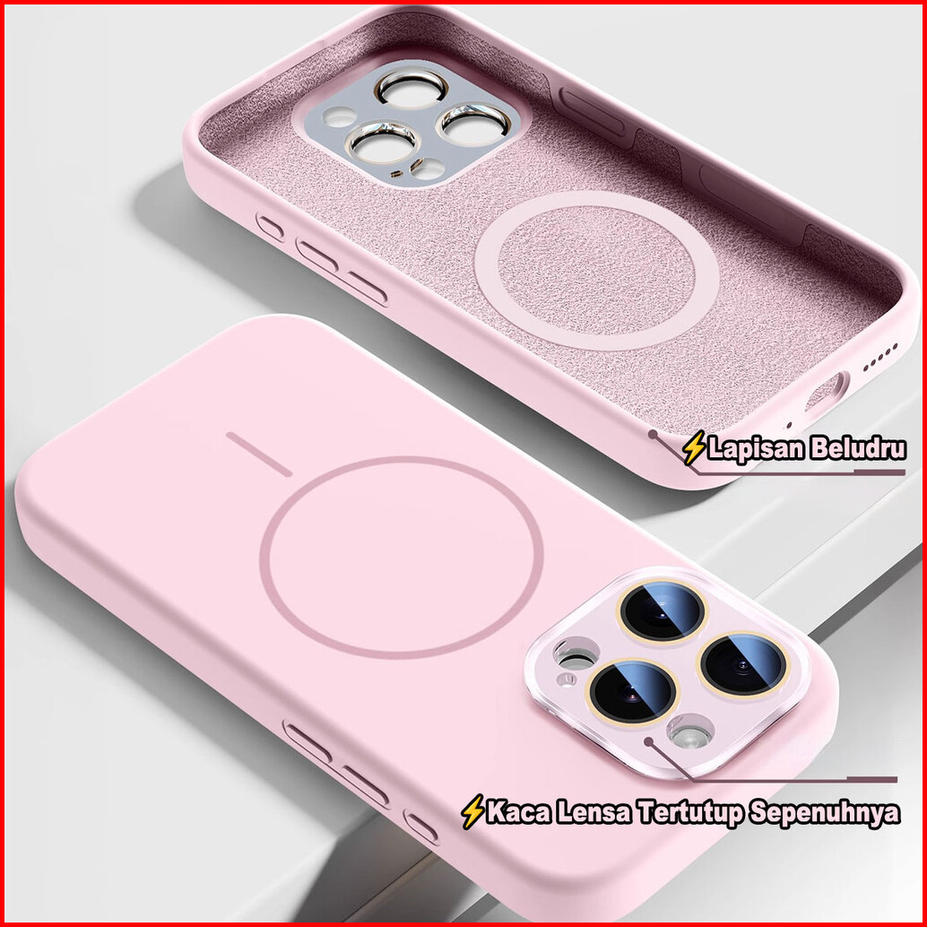 Lapisan Beludru Softcase Lens Protection Pink Soft 15plus Casing Premium Magnetic Silicone Case With Magsafe For Iphone