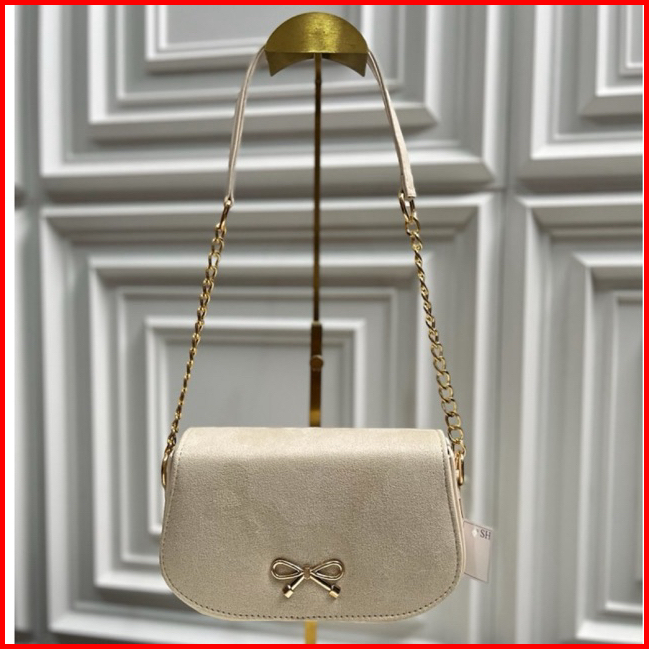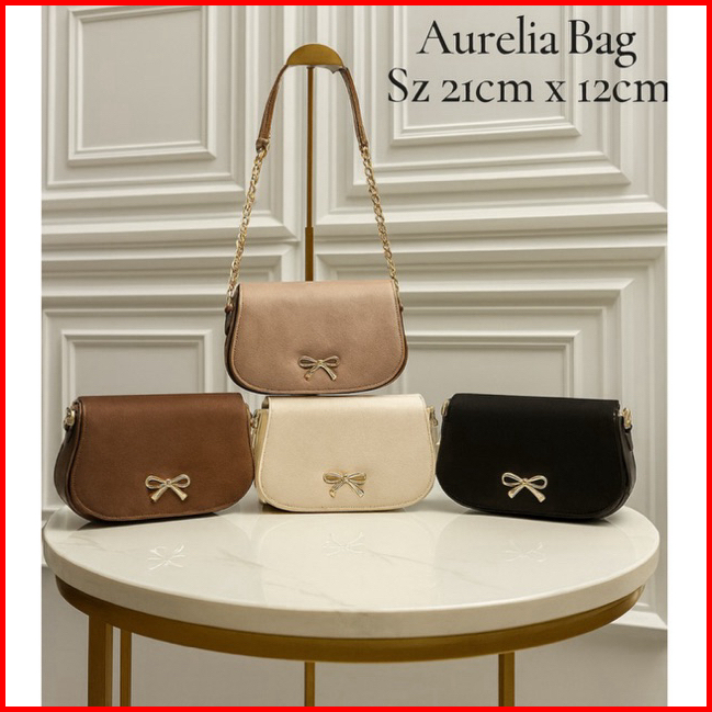 Cfg Tas Selempang Wanita Aurelia Bag Premium Sling Bag Rantai Motif Pita Elegan 21x12cm Hitam Coklat Cream Pink