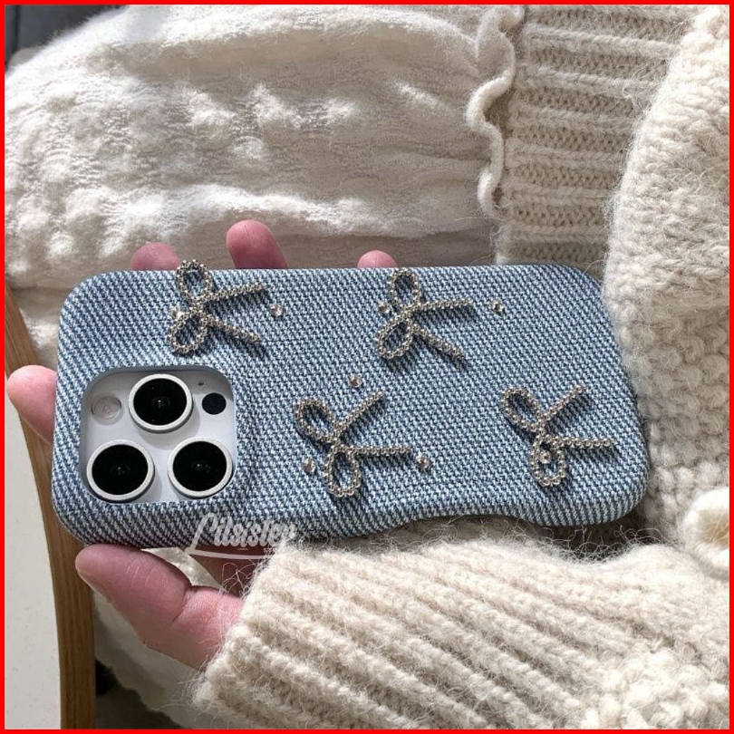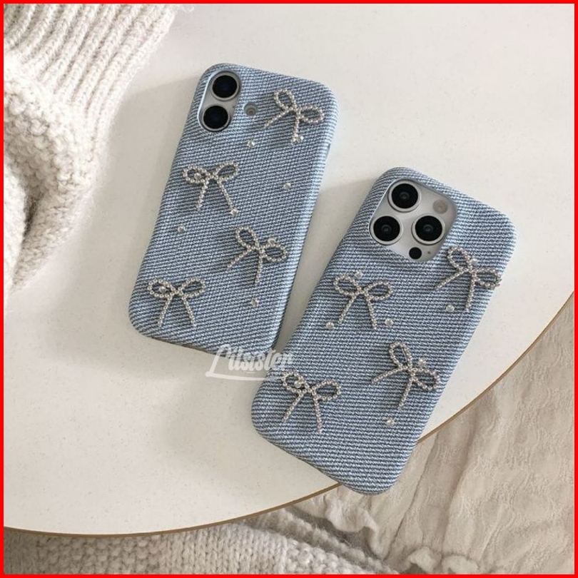 Hot Lilsisterstuff Iphone 17 Series Jolly Blink Bow Coquette Denim Iphone Case 13 14 15 16 17 Pro Promax