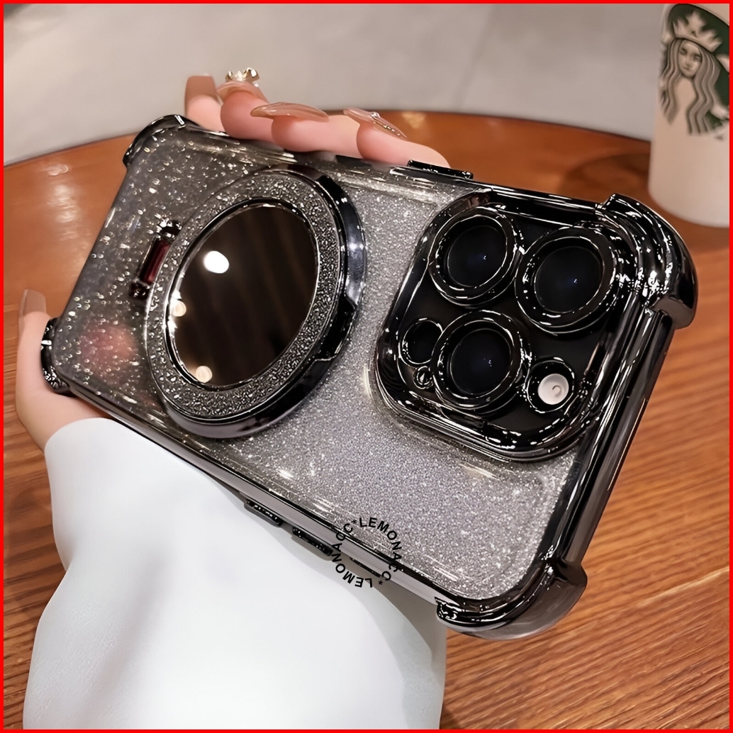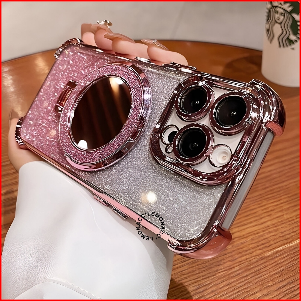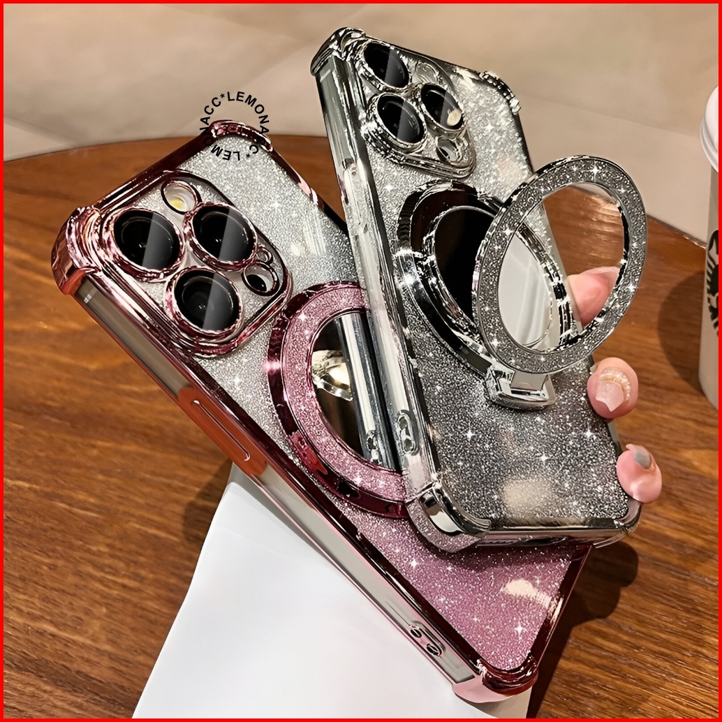 New Deluxe Luxury Quicksand Glitter Case With Magsafe Mirror Standable - Softcase Casing Hp Compatible For Iphone 11 12
