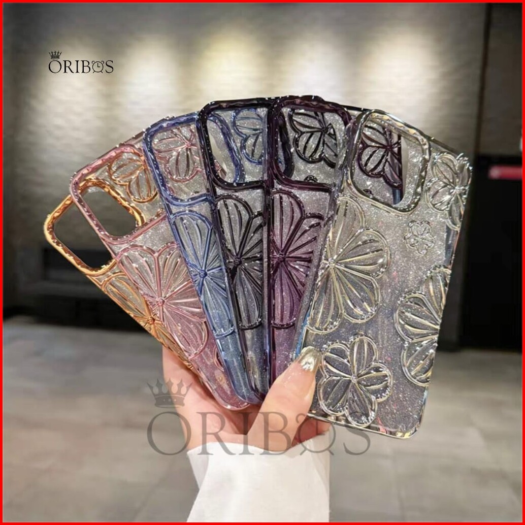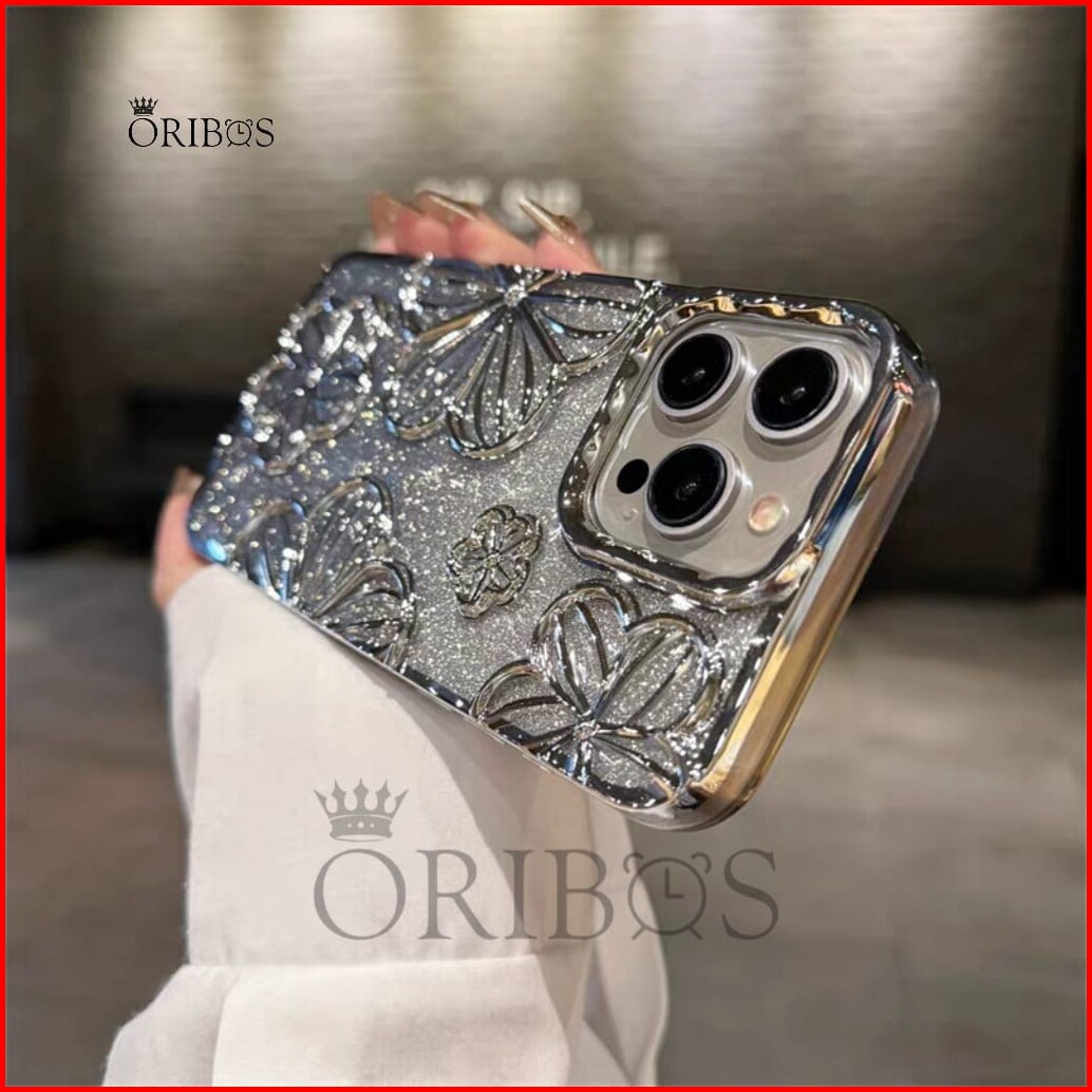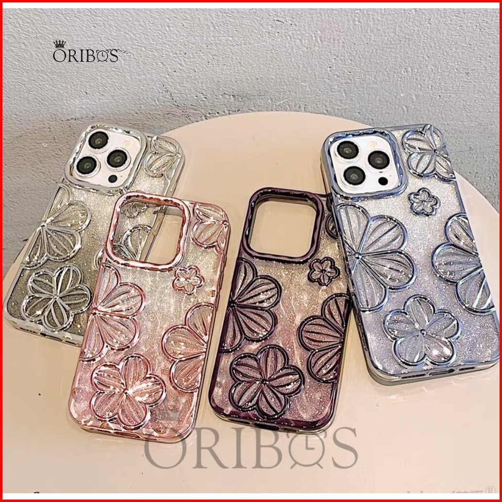 Case Glitter Quicksand Flower Crystal Chrome 2 In 1 For Iphone 15 14 Plus 13 12 11 Pro Max