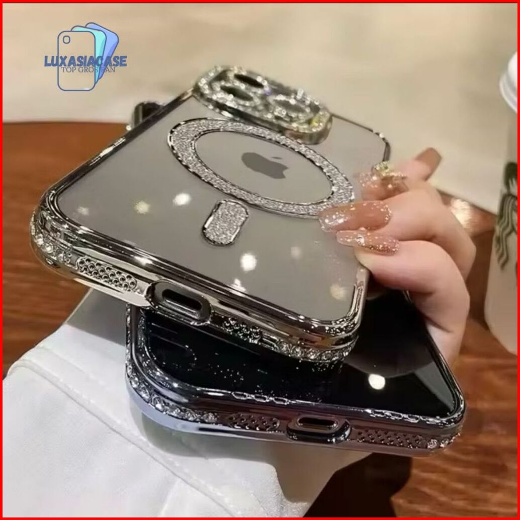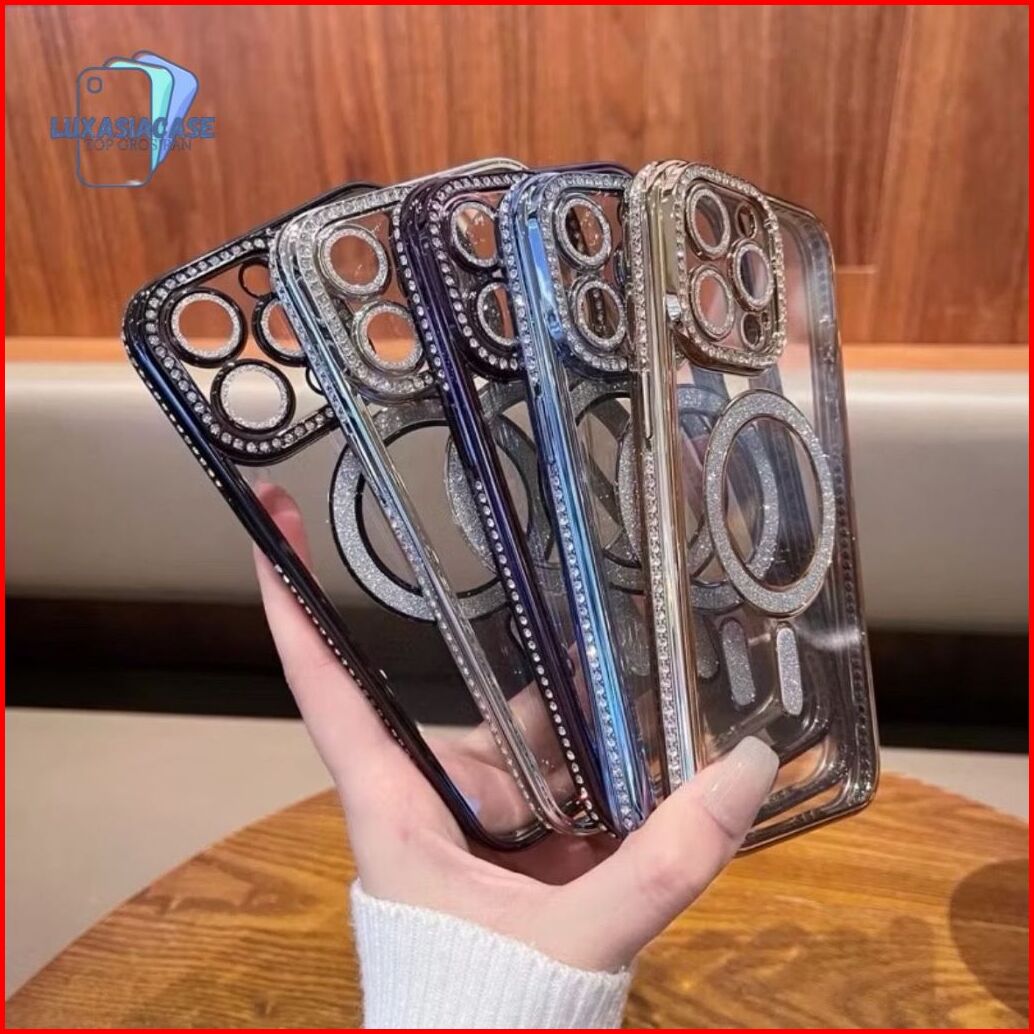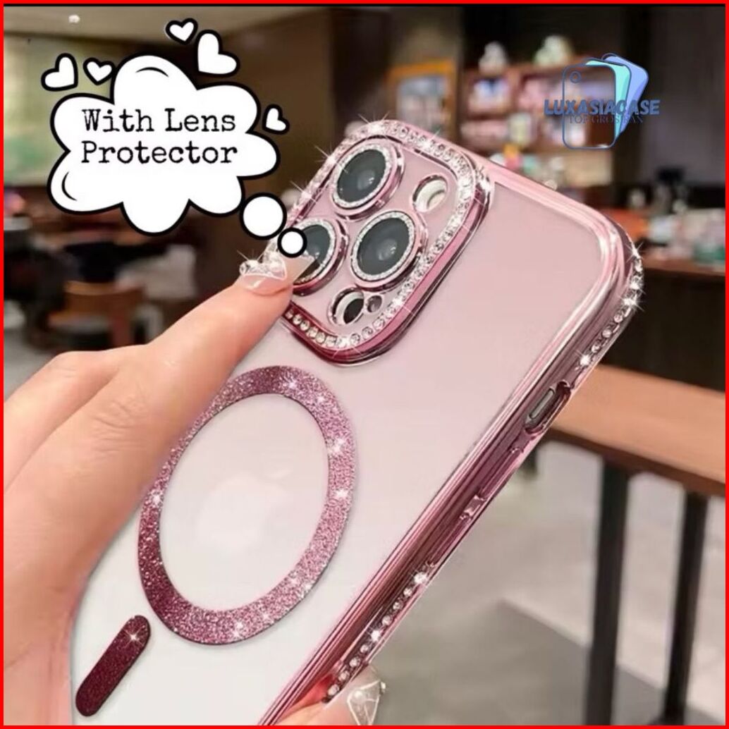 Luxury Bling Diamond Glitter Magnetic Charging Case For Iphone Pro Max 16 16 15 11 14 13 12 Pro Max Electroplate Transpa