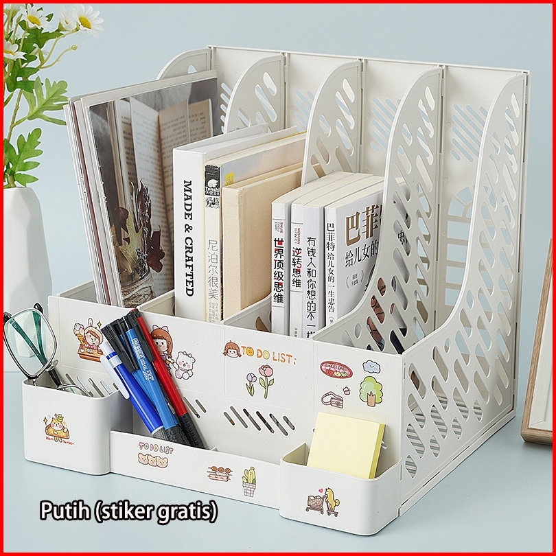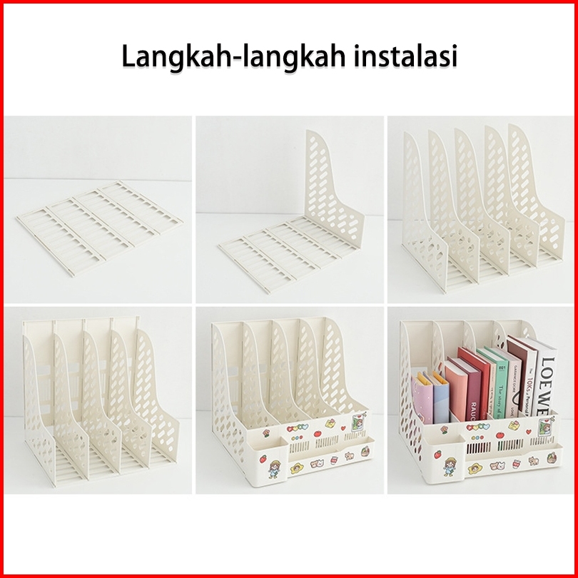 4 Warna Rak Buku Partisi Organizer Meja Set Alat Tulis Rak Buku Tanpa Stiker Organizer File Buku Meja Bahan Plastik Teba