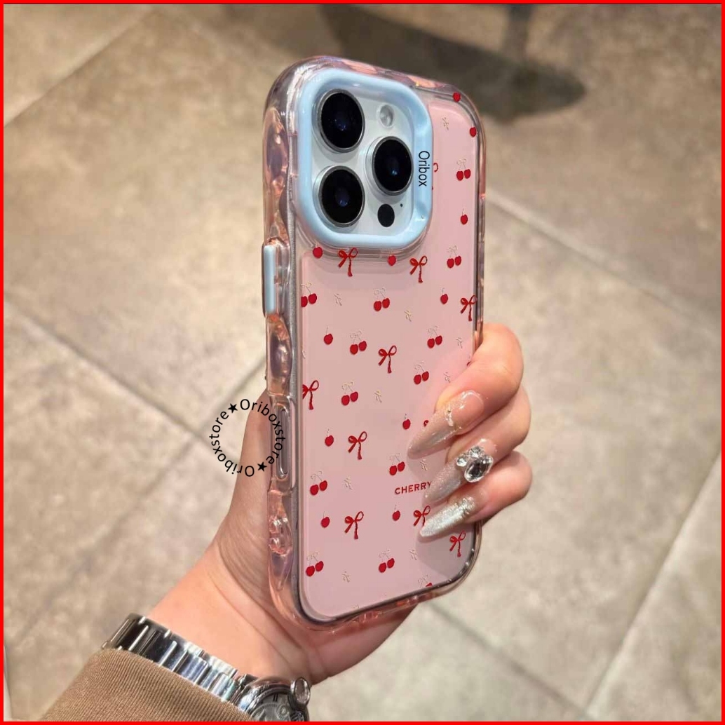Oribox - Ribbon Cherry Loves 2 In 1 Colors Macaron Case Iphone - Softcase Case Hp Compatible For Iphone 11 12 13 14 15 1