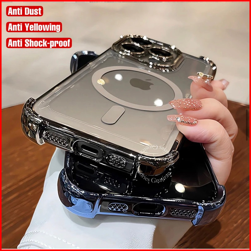 Luxury Anti Crack Air Bag Case Magsafe Chrome Iphone 11 12 13 14 15 16 Pro Max 14 15 16 Plus Lens Protector Casing Anti