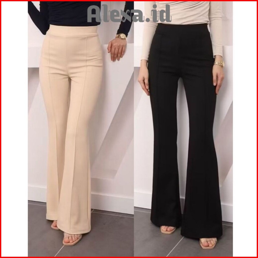 Celana Flare Pants Cutbray Scuba Pinggang Highwaist Bahan Stretch Melar Elastis Kulot Cutbray