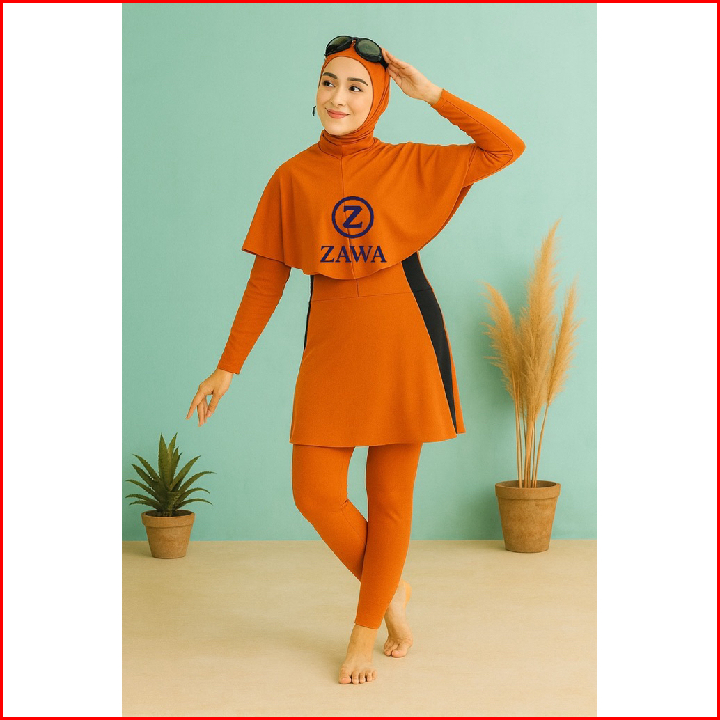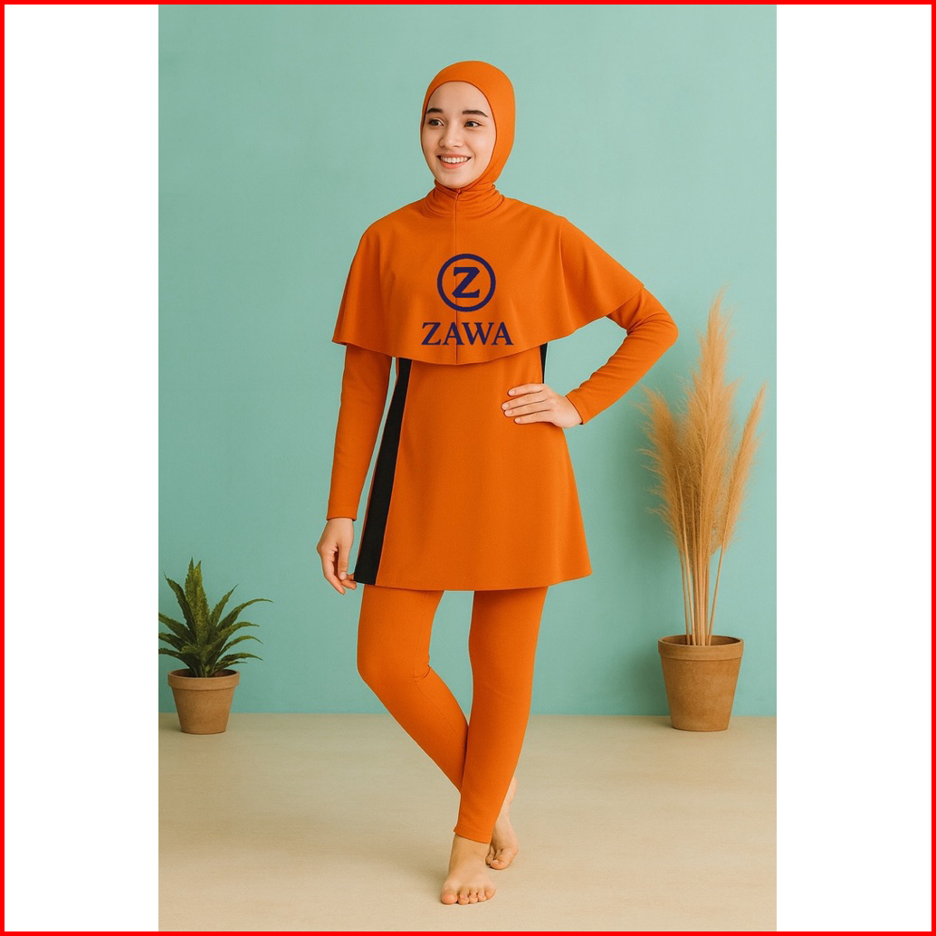 Zawa Aldila Muslimah Swimwear Orange - Baju Renang Muslimah Hijab Syari Sporty Remaja Perempuan