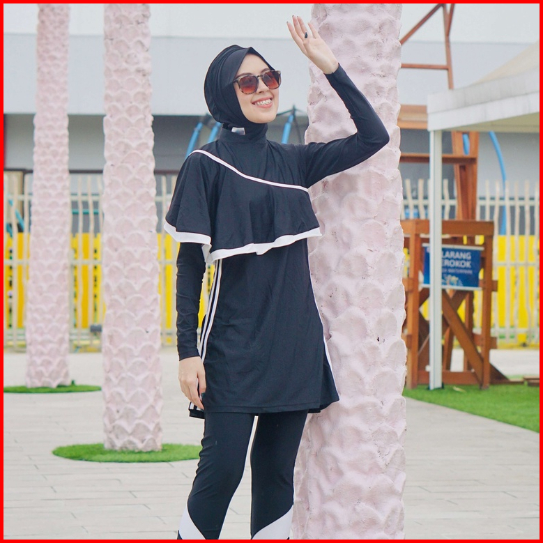 Swimsweets - Baju Renang Wanita Muslimah Orchid Black White