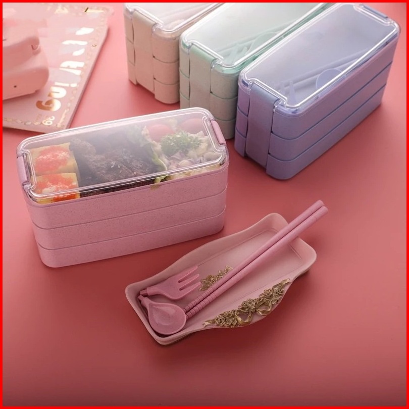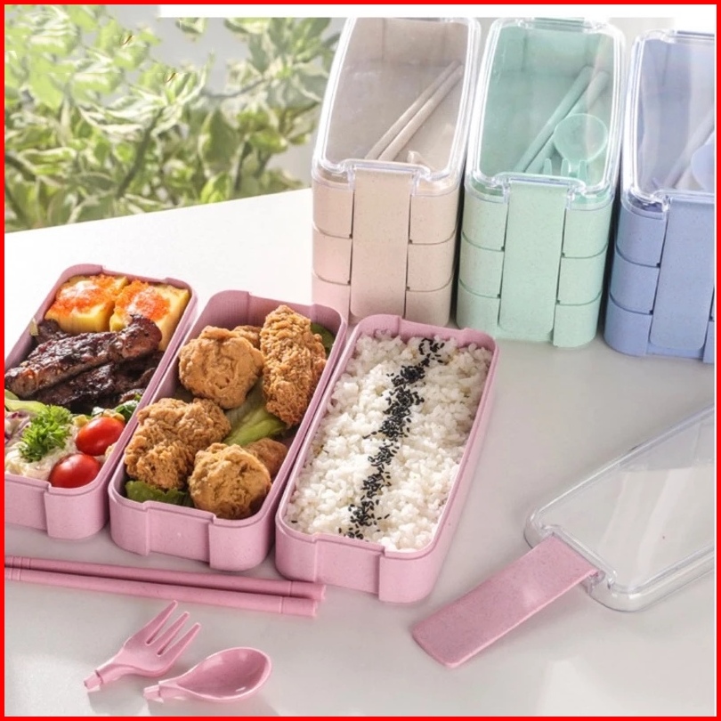 Kotak Makan 3 Susun Lunch Box Disegel Kotak Anti Bocor Wadah Individu Tempat Makan Dan Sendok Free Bpa 3 Susun Lunch Box