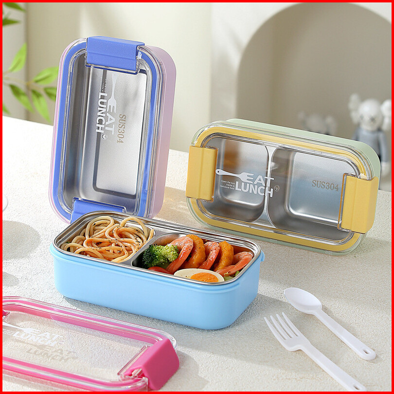 Kotak Bekal Makan Bento Lunch Box Stainless Steel 304 2 Sekat Anti Bocor