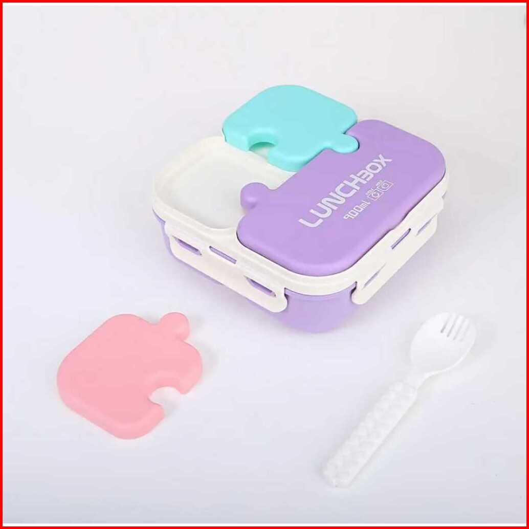 Lunchbox Terbaru Bentuk Puzzle Kotak Makan 3 Sekat Free Sendok Kapasitas 900ml Kode 0359