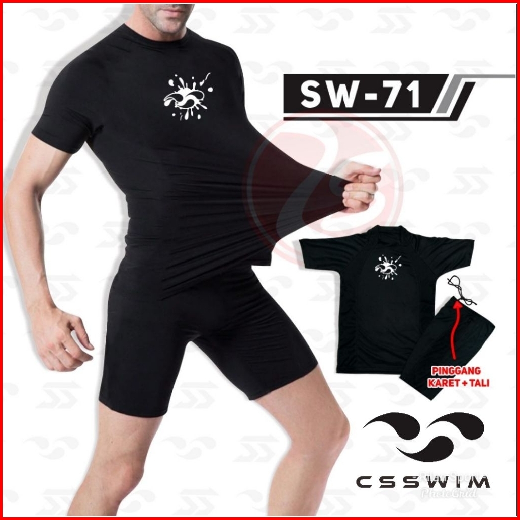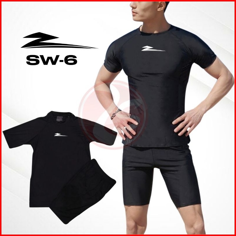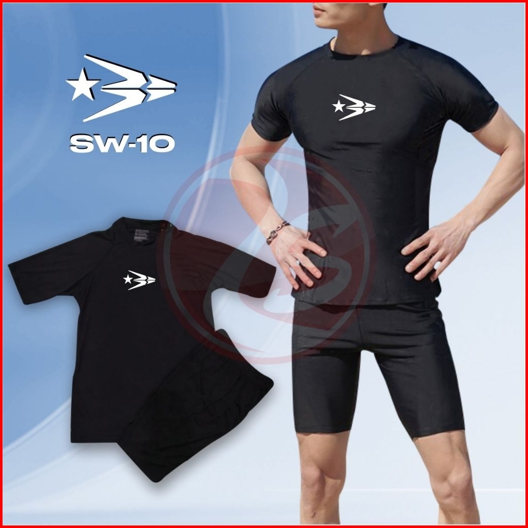 Baju Celana Renang Pria L Xl Setelan Renang Hitam Stelan Diving Black Baselayer Short Sleeve Csswim