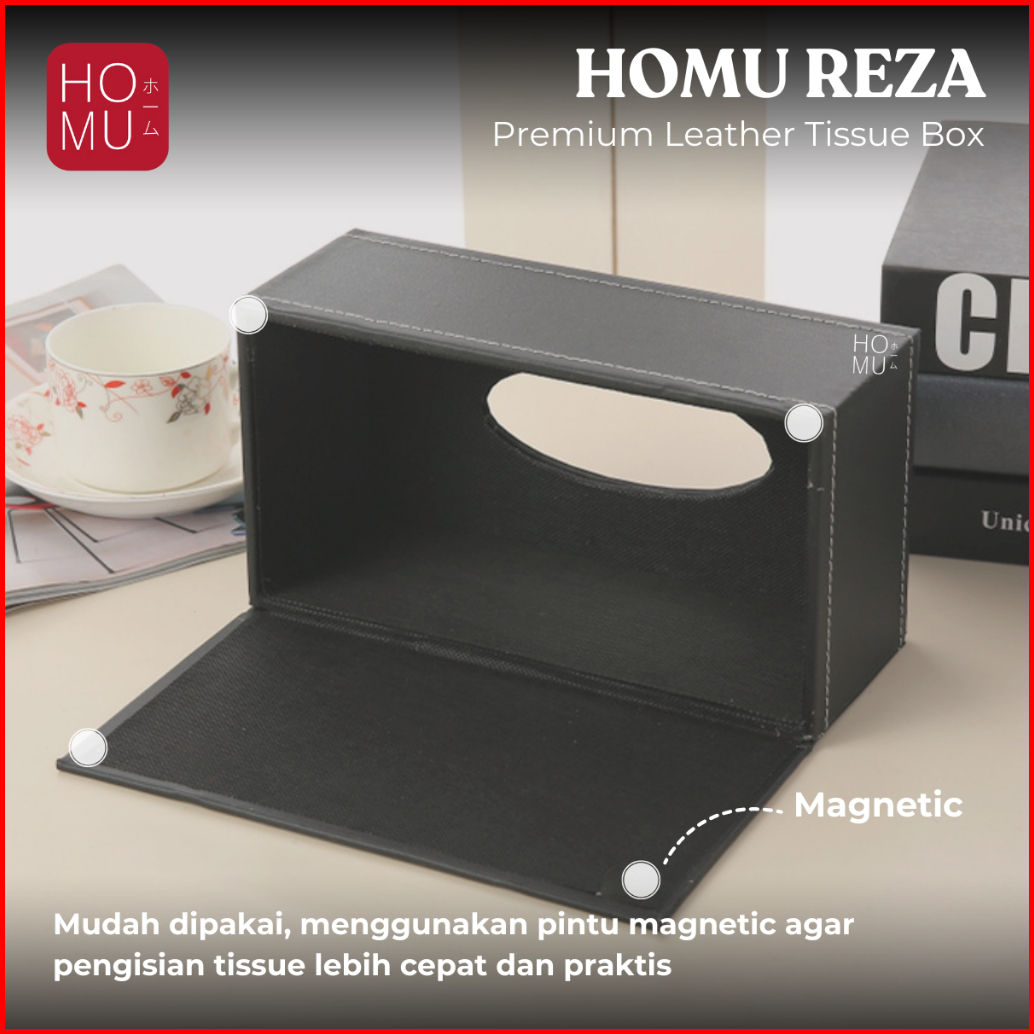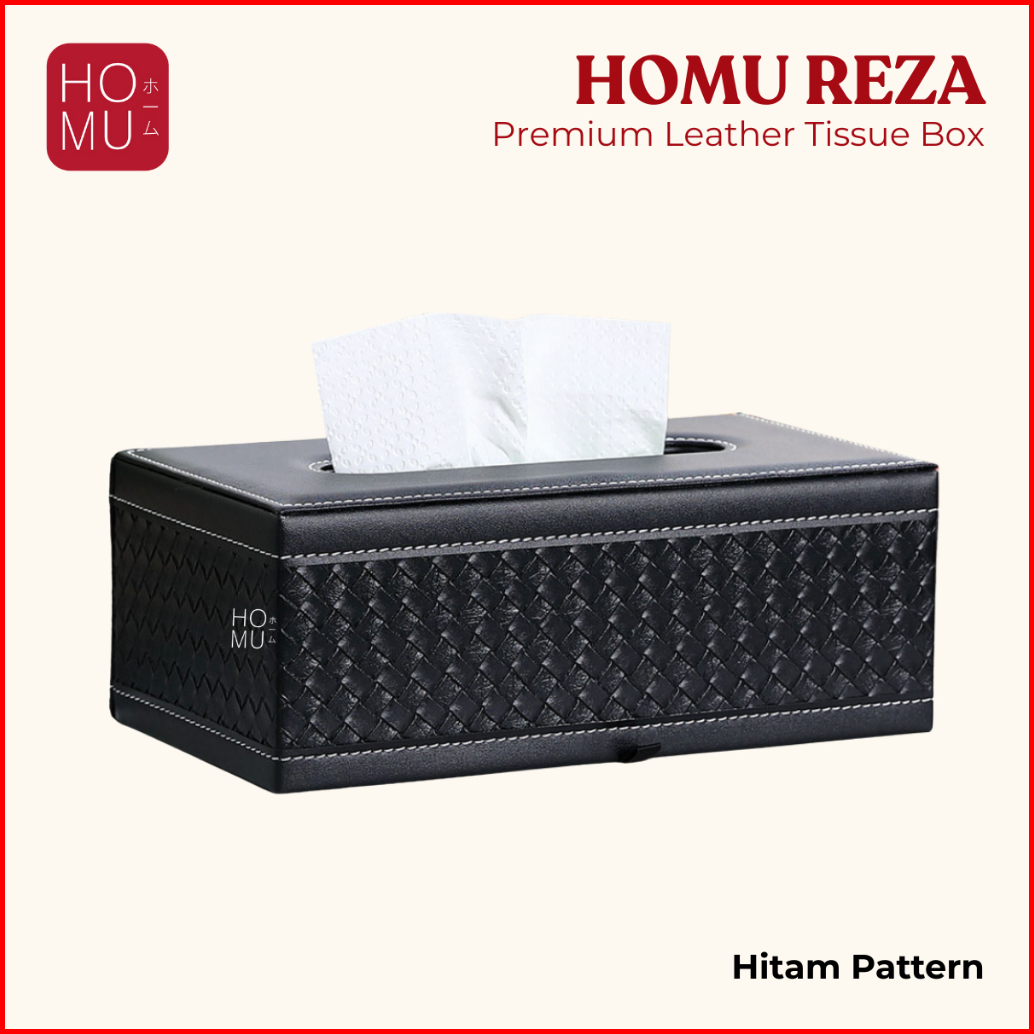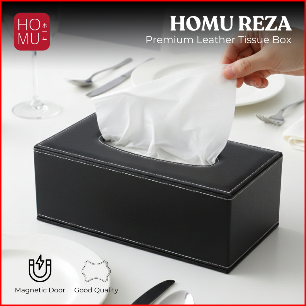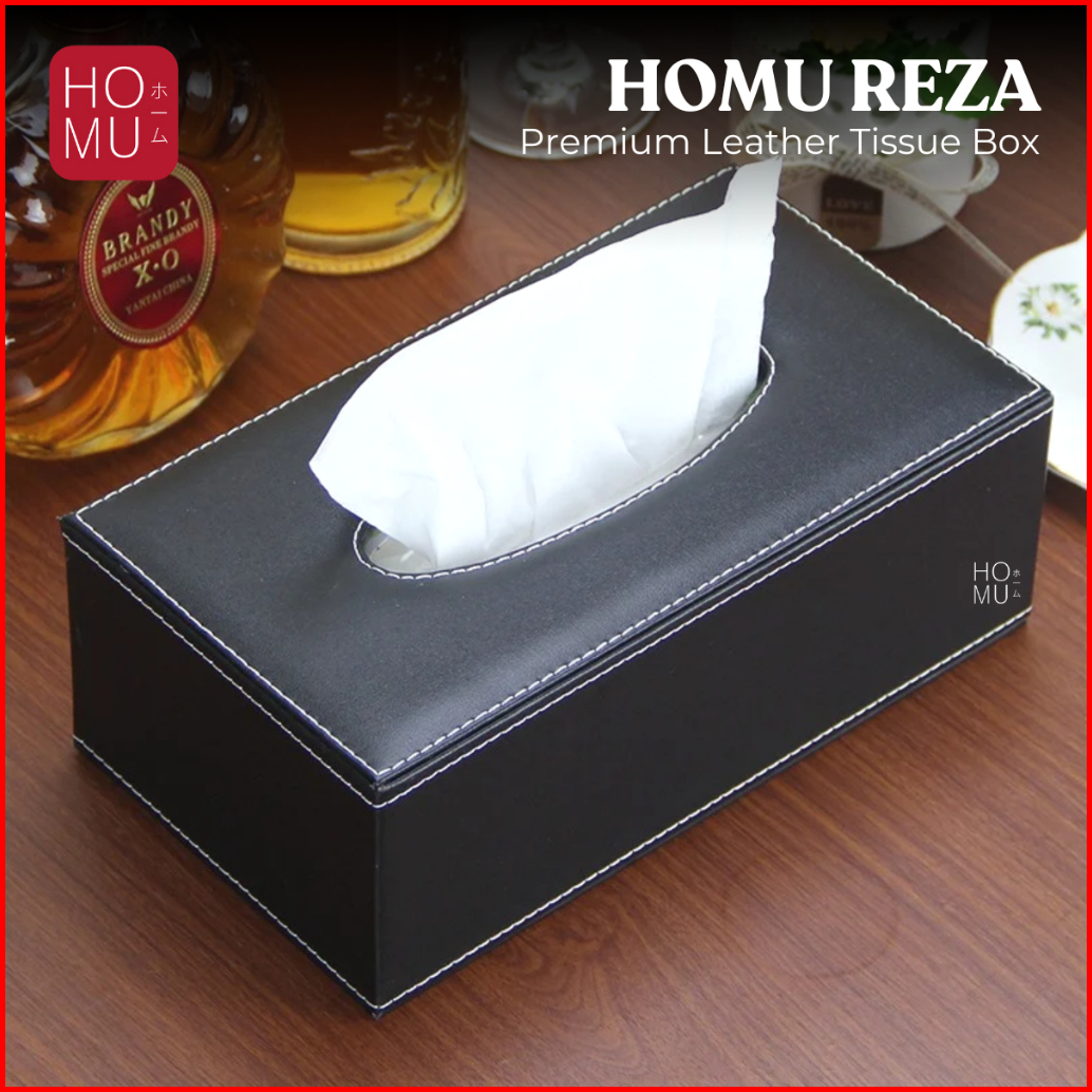 Homu Reza Kotak Tisu Kulit Premium Pu Leather Tissue Box Persegi Hitam