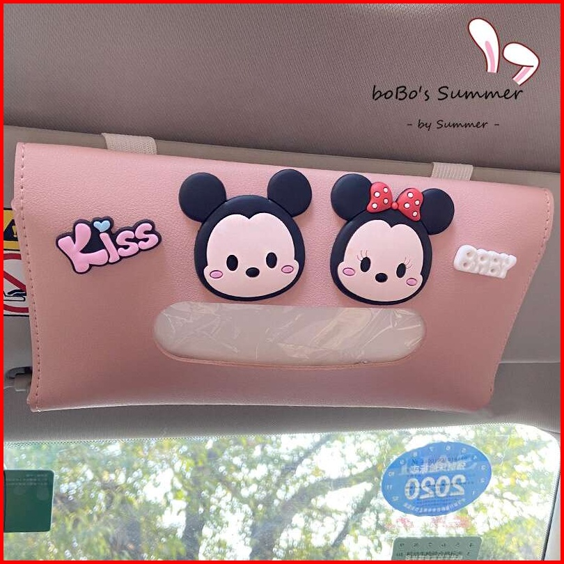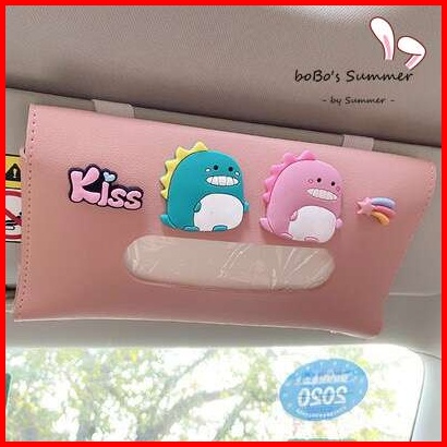 Aksesoris Interior Mobil Tissue Holder Tempat Tissue Kulit Sintetis Mini Karakter Lucu Horisontal