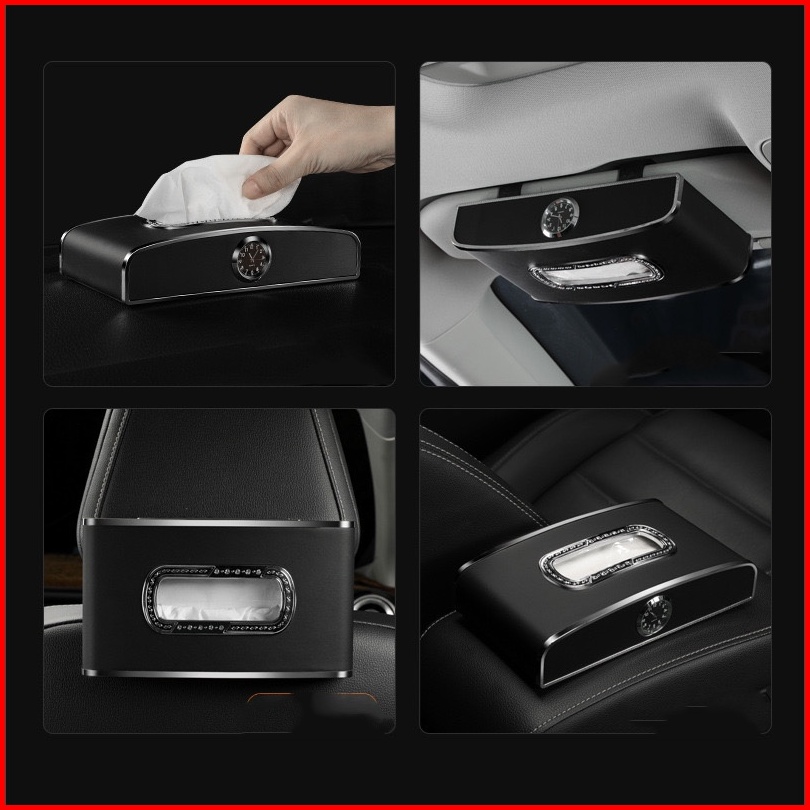 Tempat Tisu Mobil Premium Mewah Multifungsi Jam Car Tissue Box