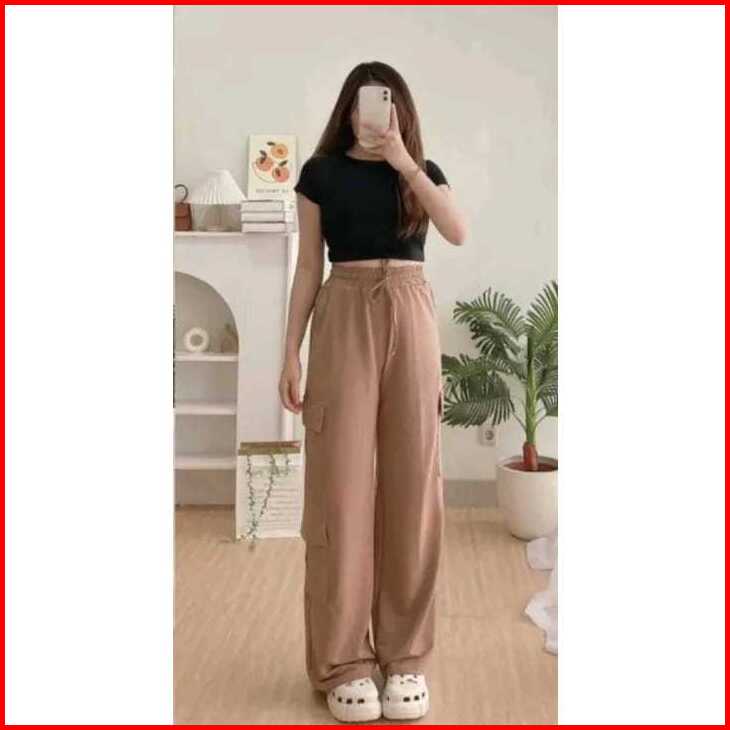 Celana Kulot Cargo Pingang Karet Tali Banyak Saku