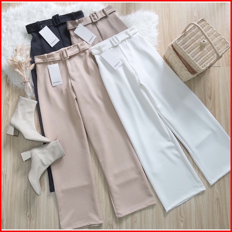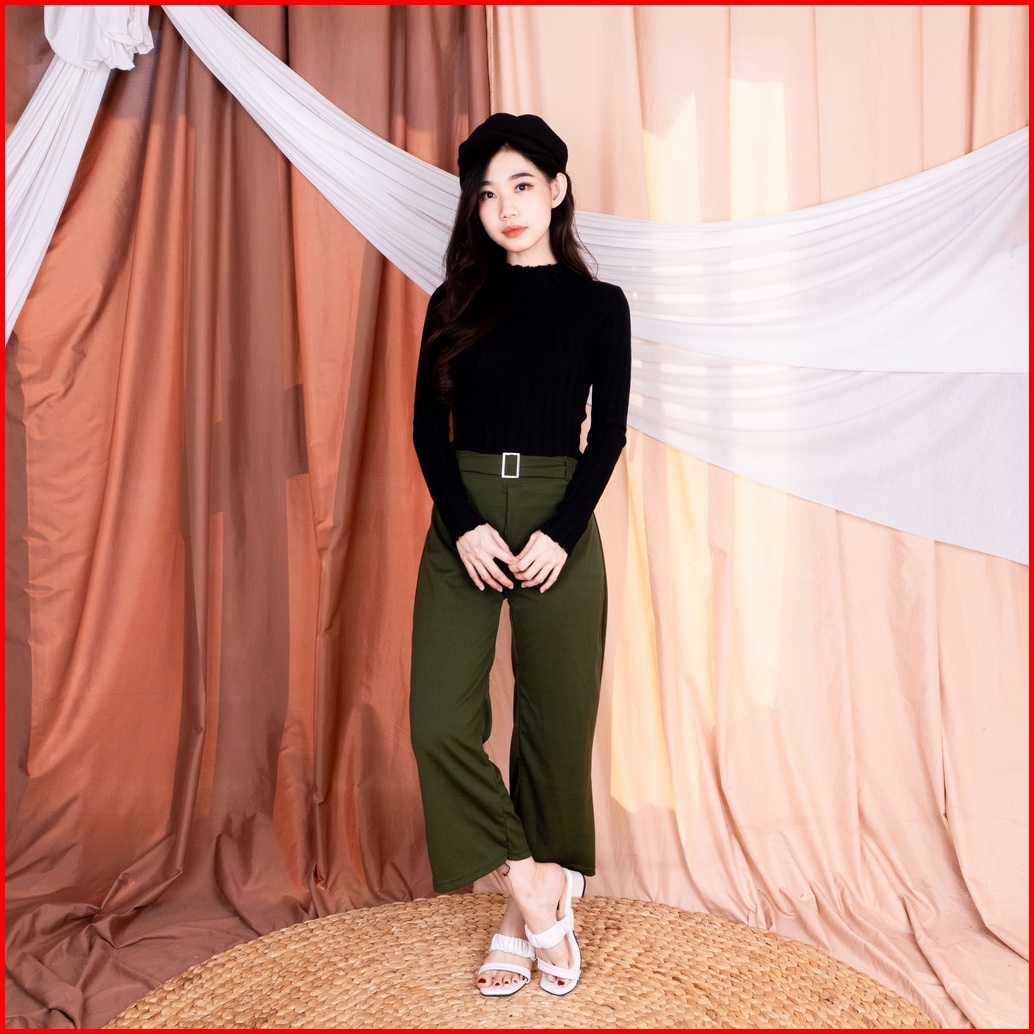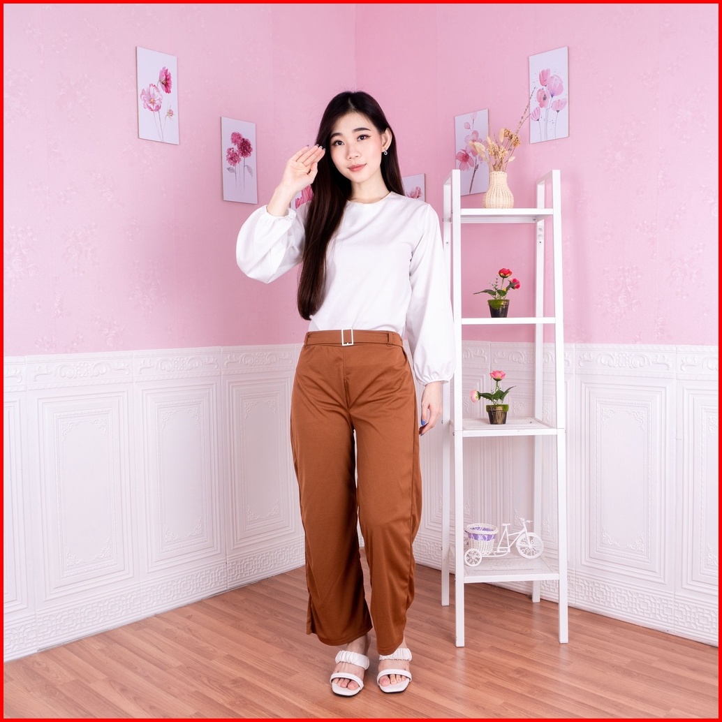 Kisha Belt Cullote Celana Wanita Kulot Basic Long Pant Kisha Belt Cullote Pants