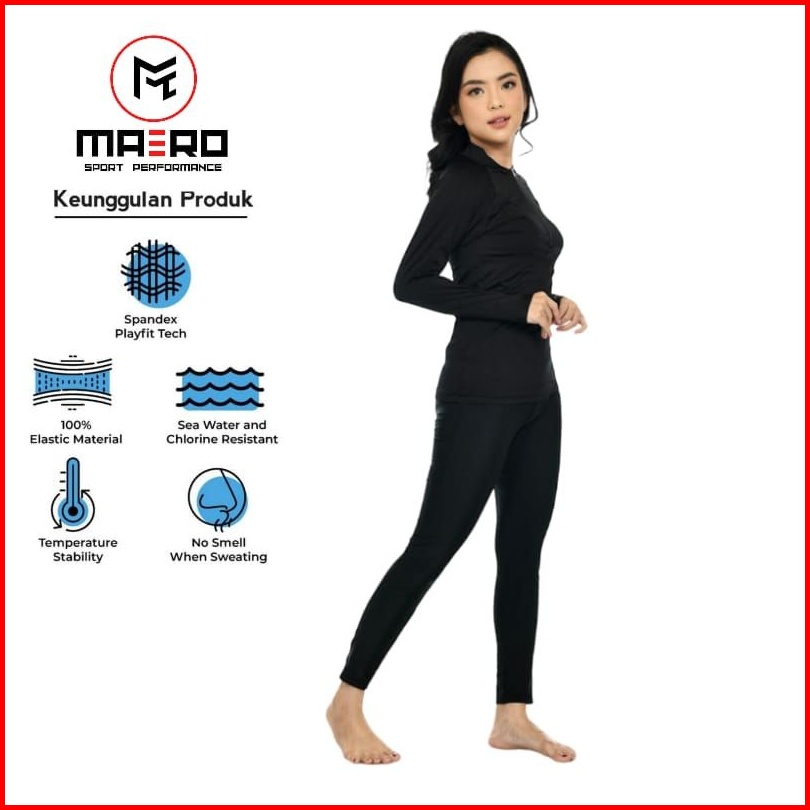 Maero-baju Renang Setelan Panjang Black Pro Plain Code Setzip02