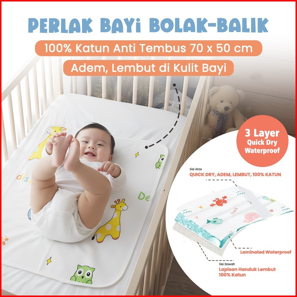 Perlak Bayi Anti Tembus Dan 2 Lapis Perlak Kasur Anti Ompol Wonderpad Alas Ompol Pl-7050