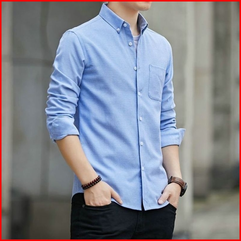 Kemeja Cowok Polos Lengan Panjang Slimfit Katun Premium Baju Pria Kondangan Pakean Kerja