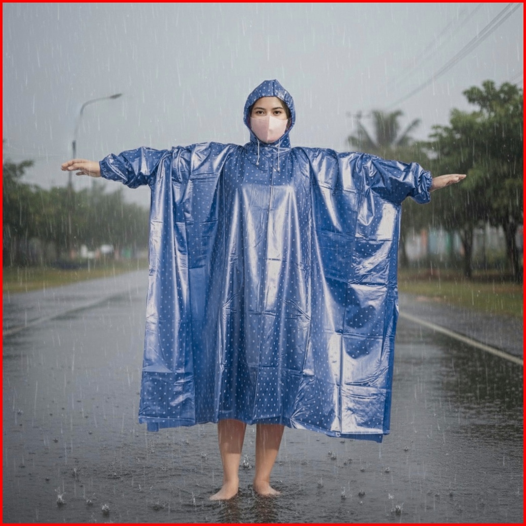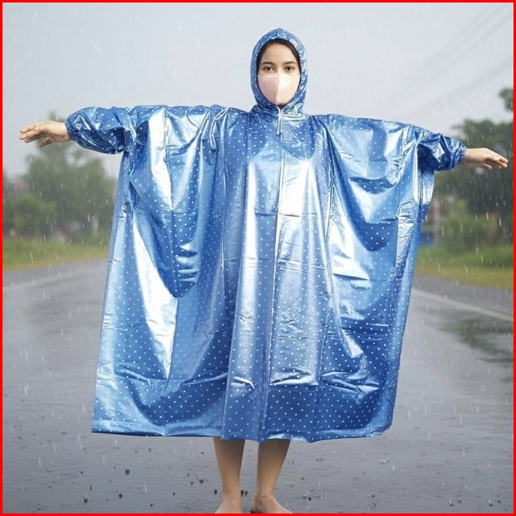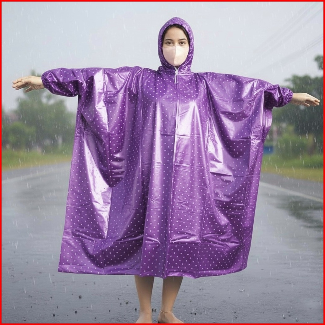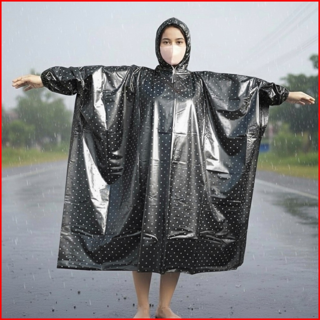 Jas Hujan Polkadot Ponco Kelelawar - Desain Lebar Aman Dari Hujan Deras