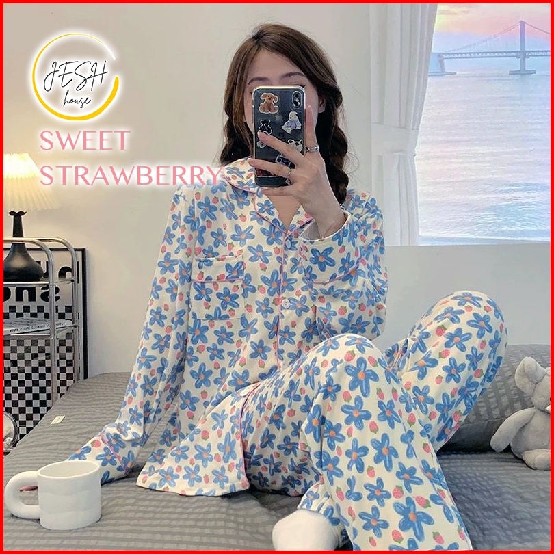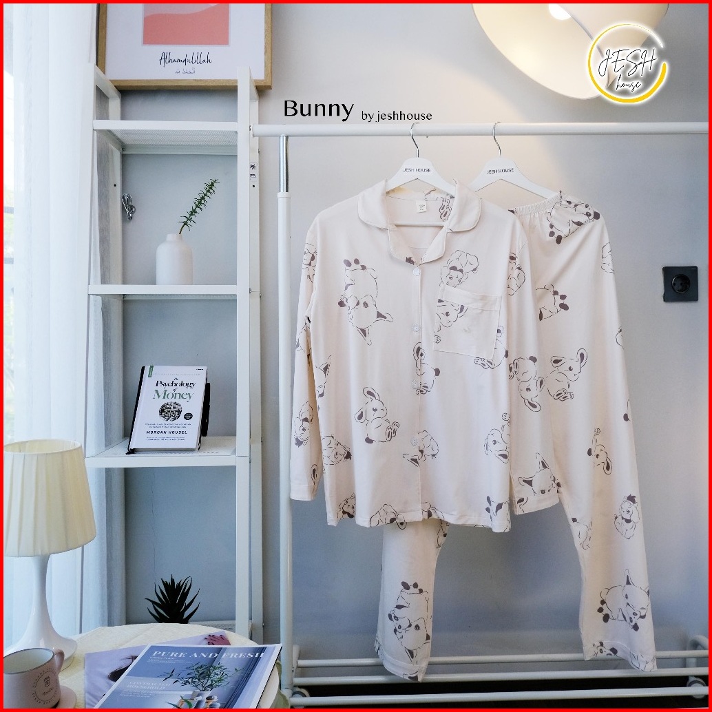 Jeshhouse Piyama Set Pp Lengan Panjang Mewah Kekinian Cotton Milky Lembut Nyaman Halus Tidur Wanita Bahan Premium Soft