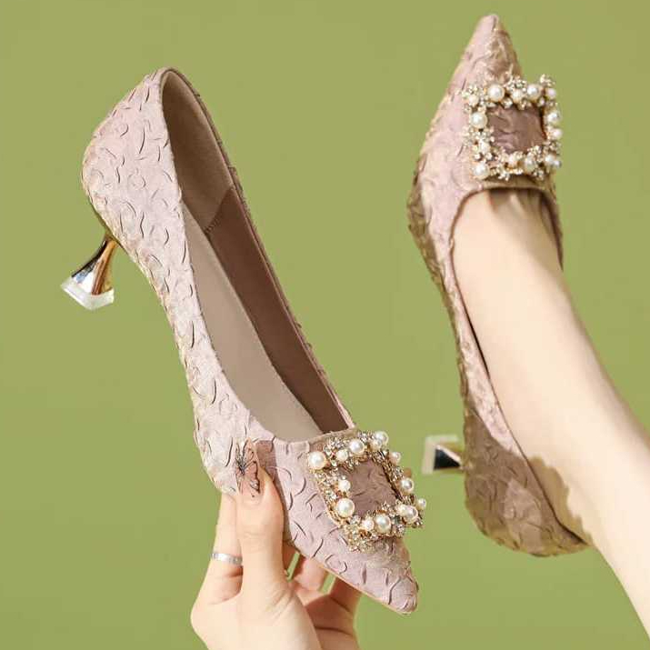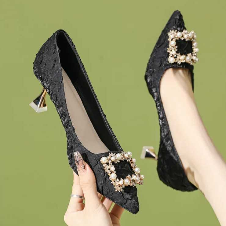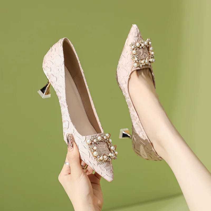 GVN SHOES - HEELS SANDAL HAK TINGGI 5 CM NATAL PERNIKAHAN MOTIF BRUKAT KOMBINASI ET KOTAK FEMINIM SPT 021