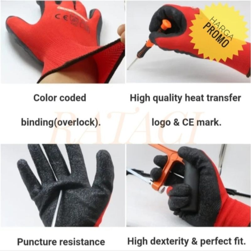 1pasang/2pcs sarung tangan safety comet anti cut/sajam kain lapis karet palm fit anti slip mekanik sepeda motor industri